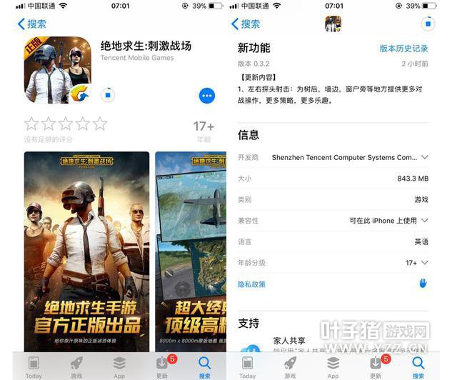 今天凌晨腾讯旗下的两款吃鸡手游,《绝地求生:全军出击》以及《绝地求生:刺激战场》同时上线IOS应用商店,开启大规模内测。 与此前只测试安卓机型不同,本次开放内测率先上线IOS版本,相信两款游戏针对IOS机型已经完美适配了。 两款游戏在游戏容量上有所不同,全军出击相对安装包较大为1.3G,而刺激战场则只有843M。 这两款游戏有何不同? 刺激战场应该着重于接近PC绝对求生的品质玩法,而全军出击则是针对更为休闲社交而做了优化,相对的画质方面偏"玩具",可能玩惯端游版的会觉得有一定的折扣。