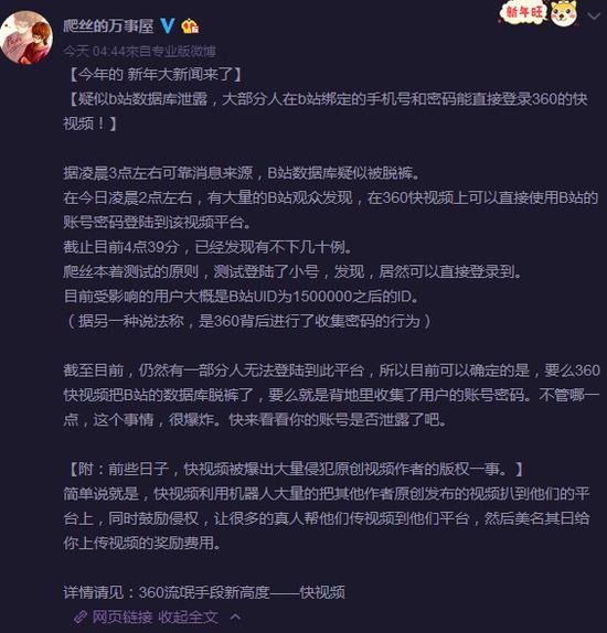 360旗下短视频应用“快视频”近日被曝大量盗取B站UP主视频,连ID、头像都被盗用,引发了网友热议,在知乎、B站贴吧都出现了关于此事的不少讨论帖,B站官方也对此次的事件进行了回应,表示将会尽最大可能维护UP主权益。 近日有网友在贴吧发帖,爆料快视频APP将B站UP主的视频、ID、甚至评论、点赞数都盗用了过去,无论大小UP,连几百粉、几十粉的UP主都不幸中招。 随后事情愈演愈烈,有网友称不仅仅是视频,连B站数据库都可能泄露了,微博网友@爬丝的万事屋爆料称,部分用户甚至可以直接用B站绑定的手机号和密码登录360的快视频。 B站方面对于这次的大事件于今日凌晨紧急做出回应,公告中写道,近日B站收到用户投诉某视频APP上存在大量盗取B站UP主稿件的行为,甚至连UP主的头像ID都被盗用,此次的侵权事件规模大、情节严重,B站呼吁被侵权UP主联系B站,他们将会采取行动,尽最大力量帮助广大UP主维护自身权益。 目前快视频官方还没有回应,有网友在贴吧晒出了知乎上自称为360内部员工的回答,该名员工表示已经进行了反馈,将会上报清理。 黄旭东也在微博表示自己中招,包括他在内的大量B站UP主的视频都被快视频盗用。 新浪声明:新浪网登载此文出于传递更多信息之目的,并不意味着赞同其观点或证实其描述。 |