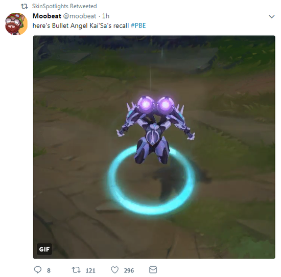 国外玩家Moobeat日前为我们分享了《LOL》新英雄虚空之女凯莎新皮肤“子弹天使(Bullet Angel)”回城动画,这款皮肤科技感十足,回城特效如果做成折跃闪回可能会更好点。