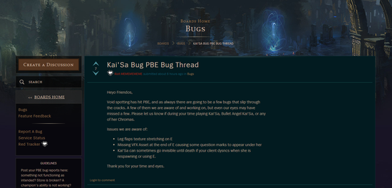 Riot官方也开启了虚空之女测试服BUG报告页面