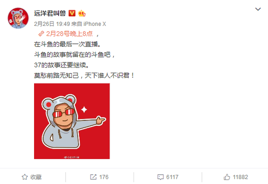 富二代主播远洋君离开斗鱼 新东家引发猜测