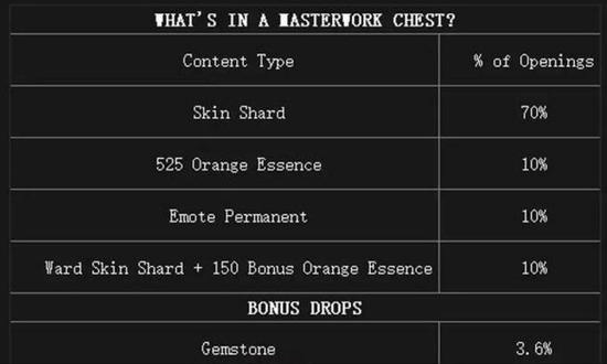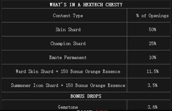 近日,《英雄联盟》开发商拳头游戏(Riot Games)公布了其免费MOBA游戏《英雄联盟》开箱子玩法的一些有趣的细节,分析了海克斯科技箱子的掉率以及规则,并同时宣布即将推出大师宝箱(masterwork chests),提供更高的掉落,但每个箱子的价格也会更高。 当然,公布开箱子掉率已经成为了很多人关心的问题,全球很多地方的主管部门都已经针对游戏业开箱子掉率做出了规定。 比如,皮肤的稀有度并不会对掉率产生影响,大多数时候,每个皮肤在开箱子的时候掉落的概率都是一样的,只有专属皮肤箱子例外。 而且,拳头表示该公司还开启了掉率保护机制,连续三个箱子必定可以获得一个皮肤碎片,连续50个箱子必定获得一个Gemstone,而且开箱子掉落的英雄价格都在4800金币以上。 此外,该公司还加入了开箱子限制,比如在玩家因为游戏内行为遭受惩罚期间是不能用钥匙开宝箱的,直到限制解除才可以使用。 海克斯科技箱子系统主要包含的是来自《英雄联盟》商店里的物品,你可以通过游戏的形式免费获得,也可以通过付费以点券购买的形式得到。开箱子系统分为宝箱和钥匙,玩家通过游戏可以随机获得宝箱和钥匙,用钥匙打开宝箱可以获得皮肤。 海克斯科技箱包含物品和掉率 海克斯科技箱子由水晶和钥匙组成。海克斯科技箱子能开出:皮肤、英雄、饰品皮肤、头像以及皮肤碎片、英雄碎片、头像碎片。 玩家将根据游戏结束评分获得成就水晶,而评分取决于该场游戏个人和队伍的表现。水晶可以通过进行游戏来免费获得,也可以在商城中购买。每次胜利之后,玩家将会随机获得钥匙和钥匙碎片。当你获得足够的钥匙碎片后,便可在制作台将它们合成完整的钥匙,当然,付费玩家也可以用点券购买钥匙。 玩家打开水晶后获得碎片,使用合成功能把碎片合成永久英雄、皮肤或者头像等,如果玩家不喜欢箱子中其他的物品,则可以将3个同类型的物品重铸成为一个新的同类型完整物品,而且这个物品一定不会和你已经拥有的物品重复。 大师宝箱掉落物品和掉率 自8.7版本之后,玩家们可以从商店购买大师宝箱Masterwork Chests,价格为165RP(箱子+钥匙价格225RP),也可以用2250RP购买11个宝箱和钥匙礼包。从拳头公布的掉率来看,大师宝箱相对于海克斯科技箱子更高一些。 不过,拳头公司也在公告中提到,如果你特别喜欢某个皮肤或者道具,最便捷的方法仍是直接购买。 |