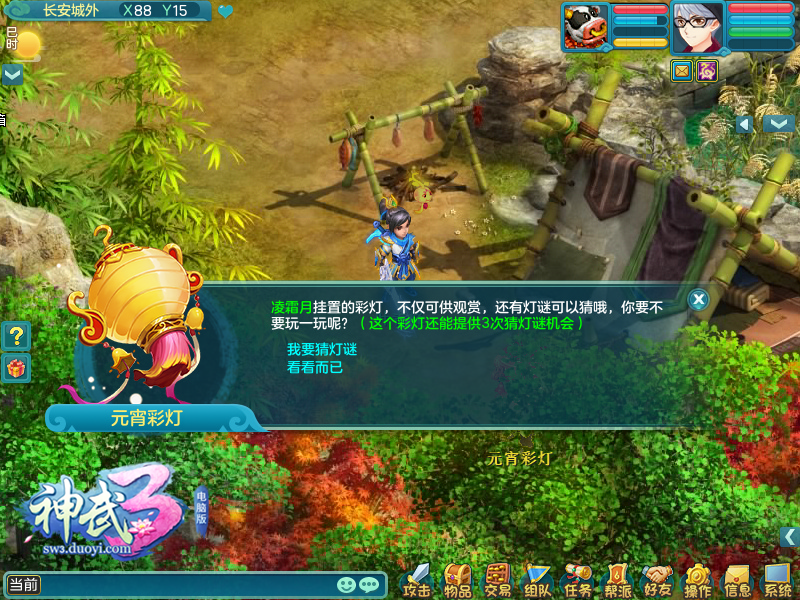 春到人间人似玉,灯烧月下月如银。值传统佳节元宵节到来之际,《神武3》为其量身打造了精彩纷呈的节日活动“元宵彩灯”。和心爱的TA一起悬挂彩灯,邂逅彩灯仙子;赏灯猜谜共度元宵佳节,品尝美味元宵。《神武3》元宵活动3月2日暖心开启,缤纷好礼与你相约。 张灯结彩欢度佳节 邂逅彩灯仙子 一曲笙歌春如海,千门灯火夜似昼。一年一度元宵节到来,千家万户张灯结彩欢度团圆佳节。在这举国欢庆的日子里,太宗李世民下诏举办宫廷彩灯盛会,并下令朝廷制作彩灯发给百姓,让百姓都张灯结彩,共度元宵佳节。 活动期间,30级以上的少侠可单人或异性双人组队参与活动,通过完成20次彩灯任务得到造型各异、美感十足的宫廷彩灯。到指定地点悬挂宫廷彩灯会触发随机事件,遭遇灯妖开启挑战模式,还有机会邂逅彩灯仙子接受祝福。趣味玩法暖心来袭,缤纷好礼乐享不停,赶紧和心爱的TA一起参加《神武3》元宵彩灯活动吧! 赏灯猜谜赢取奖励 品尝美味元宵 制灯谜、猜灯谜,是元宵节最具代表性的传统习俗。宫廷彩灯完成后,少侠们可以制作各种灯谜让其他玩家前来解答,也可以寻找其他玩家挂起的彩灯进行灯谜竞猜。正确答题就有几率获得元宵礼券,礼券可在活动NPC处兑换各样不同的美味元宵。 元宵可以给宠物同时增加资质和资质上限,一共有五种类型,分别对应攻击、防御、体力、法力、速度资质。想要全面提升宠物资质吗?想要打造更极品宠物吗?快叫上小伙伴一起来《神武3》参与活动兑换元宵吧! 普天同庆万民同欢,悬挂宫廷彩灯装扮美丽长安,更有机会邂逅彩灯仙子;竞猜灯谜智力大比拼,赢取元宵礼券兑换美味元宵,助力打造更完美宠物。《神武3》元宵活动暖心开启,现在就登录游戏和小伙伴一起猜灯谜、品元宵、赢取丰厚奖励。 关于《神武3》: 《神武3》是多益网络2017年推出的全新回合网游,快乐免费、青春相伴。结婚交友、子女养育,有爱萌宠与你并肩作战,足不出户结交四海好友;画面清新、玩法有爱,帮派家庭活动丰富,跨服切磋一起战个痛快。任务探索策略PK休闲交友,总有一样是你的最爱。 了解更多相关信息,请前往http://sw.yzz.cn/ |