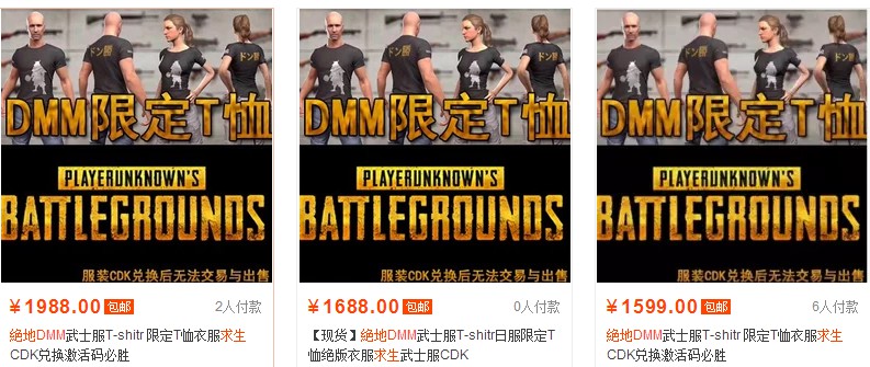 《绝地求生》饰品市场近来价格波动颇大,连红头巾都受到了影响,不过一些限定饰品的价格还是非常惊人,例如早先日服的DMM武士服。 早先花3000日元,也就是不到180元人民币即可获得的《绝地求生》武士服现在在某宝上的价格已经涨了N倍,CDK的售价在1500元+,高价的甚至在2000元上下,价格一路上涨。 这件武士服的价格在去年就已经开始增长,但涨幅还没有这么夸张,而如今的CDK价格已经高到令人咋舌,直线飙升。 这件限定T恤前面印的是极具日本特色的持平底锅武士,背面则是日服对应吃鸡的梗“ドン勝”,的确很帅气,不过这个价格也是很惊人了。还是要提醒大家一句,购买CDK需谨慎。 |