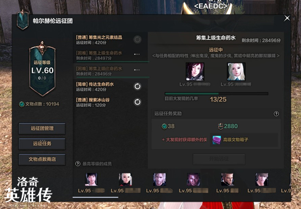 春暖花开,这是一场关于冒险的征程!粉色的樱花即将华丽绽放,《洛奇英雄传》艾琳大陆的勇士们又面临着全新的挑战!帕尔赫伦远征团,这个全新的系统、玩法将于3月14日正式揭开面纱,邀请所有95级的勇士前来一战,也许“大发现”还会在不经意间闯入你的背包之中!现在,就让我们抢先一探这个“神秘”的帕尔赫伦远征团吧! 【什么是帕尔赫伦远征团?】 当账号至少一名角色到达95级并完成相关前置任务后,即可开启帕尔赫伦远征团,玩家们可以通过角色面板或选项直接进入帕尔赫伦远征团界面,并开启一场关于发现与冒险的全新旅程!同一账号、大区下达到95级的角色越多,远征团的级别会随之提升,所获得的增益BUFF也将不断增强!玩家们可派出远征团成员完成相关任务,丰厚奖励等着你! 【帕尔赫伦远征团管理及任务】 帕尔赫伦远征团将随着成员的增加不断变换相应的远征团名称,其远征团的等级与增益BUFF也会随之获得提升,玩家们可以通过远征团管理菜单确认自己所属远征团的等级、福利及成员。 在同一账号下,可供最多20个角色达到95级并加入帕尔赫伦远征团。12名风格不同的角色对应着5个不同的特性,满级角色越多,可进行的任务也将越多,最多5个任务供玩家选择。在选择角色出征时,尽可能选择与任务相配的特征,这对提升“大发现”几率有着非常大的帮助哦! 【帕尔赫伦远征团奖励】 在完成帕尔赫伦远征团任务后,玩家们除了获得“远征经验”及“文物点数”外,还有一定几率获得“大发现”这个额外奖励。同时,“大发现”所获得的的文物箱子会随着远征等级的提高而更有可能开出高价值道具。 文物箱子中的奖励包含:6级/7级附魔卷轴、附魔保护石、传承石碎片、强化保护石等游戏道具。 完成“远征任务”后获得的“文物点数”,还可在“文物点数商店”兑换奖励,其中不乏精灵石、勇士奖章以及里尔系列玩具哦! 春意盎然,在樱花开启的时刻,《洛奇英雄传》的勇士们也将面临全新的挑战!快加入帕尔赫伦远征团,将稀有道具全部带走吧! 《洛奇英雄传》运营团队 3月9日 了解更多相关信息,请前往http://game.yzz.cn/html/info-133.html |