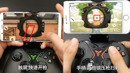 对于已经内置陀螺仪的吃鸡手游来说,飞智选择在手柄里做出体感功能似乎有些大胆。但据飞智工程说,游戏内的陀螺仪仅仅只能满足有体感这一个功能,飞智手柄选用了专业的体感芯片,不论是在响应速度还是操作流畅度上,都远超手机陀螺仪。并且游戏内陀螺仪设置简陋,远不及飞智体感随开随关来的方便。 在手柄体感怎么使用上,飞智也有一套自己的攻略体系,主要针对的就是吃鸡手游中两项重要的操作,瞄准与压枪。在吃鸡手游中,人物相隔50M后可瞄准的部分就已经较小,依靠右摇杆轻推很难做到精确,更别说直接触屏滑动了。体感在此时就起到了小范围微调的作用,而且即使目标人物移动,也只需要和其移动方向保持一致地摆动手柄,体感就能让准心“跟”上去。