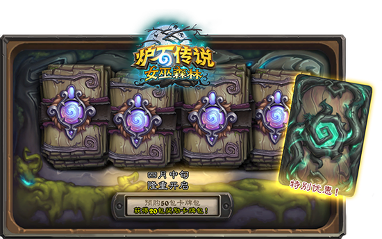 准备好开始新的冒险了吗?《炉石传说》全新扩展包:“女巫森林”正式公开!我们将前往吉尔尼斯城,探索高墙之外的古老森林,发现隐藏在密林深处的邪恶秘密。全新的扩展包将会带来新的卡牌,有趣的新机制,依然免费好玩的冒险模式。更让人惊喜的是,现在预购你能够获得足足70包“女巫森林”卡牌包! “女巫森林”预购加量不加价 共可获得70卡包加限定卡背 《炉石传说》最新扩展包的预购已经正式开启,现在预购“女巫森林”奥术之尘礼包即可获得50点奥术之尘,并获赠50包“女巫森林”卡牌包、1张“黑暗森林”卡背以及额外的20包“女巫森林”卡牌包。 没错,完成预购你就能获得总共70包全新卡牌包以及“黑暗森林”卡背。如此优惠怎能错过?现在就赶紧预购吧!需要提醒一下的是,在“女巫森林”扩展包正式上线之后,你才可以将这些卡包打开。 欢迎来到女巫森林 多项新玩法给你非凡体验 《炉石传说》最新扩展包“女巫森林”包含了135张全新卡牌,在扩展包正式上线后,登录游戏就可以免费领取3包全新卡牌包和1张随机的“女巫森林”传说级别卡牌。 在这一次的新扩展包中,还带来了一系列全新的机制和关键词。它们将给《炉石传说》带来崭新的游戏体验。 · 奇偶数组合卡牌 特定构筑产生强大效果 在这次的扩展包中,有一些特殊的卡牌会对你套牌中卡牌的法力值消耗提出要求,如果你能够满足条件便可以获得极其强大的效果。 比如“噬月者巴库”,如果你把它加入一副仅消耗奇数法力值的套牌中,就能在对战开始时获得升级版的英雄技能。而“吉恩·格雷迈恩”则需要套牌中只有法力值消耗为偶数的牌,这样你的初始英雄技能的法力值消耗会变为(1)点。 · 全新关键词:回响,突袭 “回响”和“突袭”是这次新扩展包中加入的两个全新的关键词。它们的效果分别为,回响:只要你的法力值足够,就可以在同一回合内重复使用。突袭:在打出后可以立刻攻击敌方随从。不过与冲锋不同的是,突袭的卡牌无法攻击敌方英雄。 · 会不断变身的狼人牌! 更多有趣的新卡来临 除此之外,还有一些更加有趣的新卡牌。很多人都知道,吉尔尼斯人都有一个可怕的秘密,在他们生命受到威胁的时刻,会变身为体型巨大且恐怖的狼人。 “南瓜农夫”这张卡牌便是一张狼人牌,当它在你手牌里时,每个回合它的攻击力和生命值都会互换,因此你可以自由选择想要的效果以及时机出手。 而“窃魂者阿扎莉娜”则是一张中立传说牌,它可以将你的手牌替换成对手手牌的复制。是不是非常有意思呢? 全新冒险模式:怪物狩猎 免费无门槛还送专属卡背 在“狗头人与地下世界”中,加入了一个全新的地下城冒险模式。不但免费,而且不需要使用自己的牌组便可以直接加入。充满个性的随机Boss,以及不断成长且威力巨大的创意卡牌让这个模式备受好评。在新扩展包“女巫森林”中,我们同样将迎来一个全新的冒险模式:“怪物狩猎”。 在“怪物狩猎”这个单人冒险模式中,吉尔尼斯经验最丰富的怪物猎人们都被召唤而来,驱除森林中的黑暗。它的玩法与“狗头人与地下世界”的地下城冒险相似,玩家需要打败首领来获得卡牌,从而构建出让自己生存下去的强大套牌,一步一步击败遭遇到的首领。 “怪物狩猎”将在“女巫森林”上线之后的两周后开启。准备好开始全新的冒险了吗? 吹响号角,开足马力,挺进女巫森林的最深处吧! |