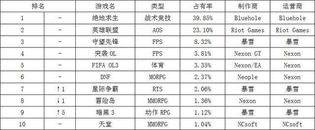 暗黑3 而动作RPG《暗黑3》在游戏时间方面更是上涨了59.5%,一跃升至排行榜第九名。2月23日开启的第13赛季,是《暗黑3》本次排名“飞跃”的主要原因。 位居前三的游戏方面,《绝地求生》以39.85%的成绩,连续16周位居排行榜第一,《英雄联盟》以23.10%的成绩位居亚军,而《守望先锋》则以8.32%的占有率位居季军。