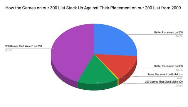 本榜单上榜作品与该杂志在第200期上推出的“史上最佳200款游戏”排名变动情况。 附:《Game Informer》评选的“史上最佳300款游戏”榜单具体如下: 300 如龙0 PS4 2017 299 Wii运动 Wii 2006 298 皇牌空战5:不被歌颂的战争 PS2 2004 297 异形:隔离 PS4/XBO 2014 296 振幅 PS2 2003 295 声名狼藉 PS3 2009 294 超世纪战警:逃离屠夫湾 Xbox 2004 293 怪物猎人:世界 PS4/XBO 2018 292 风暴英雄 PC 2015 291 神秘岛 PC 1993 290 热舞革命 街机 1999 289 NHL 09 PS3/Xb360 2008 288 毁灭伯爵3D PC 1996 287 细胞分裂:黑名单 PS3/Xb360/PC 2013 286 暗影狂奔:归来 PC 2013 285 龙之信条 PS3/Xb360 2012 284 棒球明星 NES 1989 283 未上锁的房间 iOS 2012 282 百战天虫:末日浩劫 PC 1999 281 雷曼:传奇 PS3/Xb360/Wii U/PSV/PC 2013 280 地下城守护者 PC 1997 279 美国大学橄榄球11 PS3/Xb360 2010 278 暗黑血统 PS3/Xb360 2010 277 纸片马里奥 N64 2000 276 极品飞车:热力追踪 PS3/Xb360 2010 275 传说之下 PC 2015 274 黑道圣徒3 PS3/Xb360/PC 2011 273 星球大战:前线 PS2/Xbox/PSP/PC 2005 272 山脊赛车 PS1 1995 271 美妙世界 DS 2008 270 极限滑雪3 PS2/Xbox/GC 2003 269 城堡毁灭者 Xb360 2008 268 柴堆 PS4/PC/Mac 2017 267 巫师2:国王的刺客 PC 2011 266 小小大星球 PS3 2008 265 零:红蝶 PS2 2003 264 公理边缘 PS4 2015 263 牧场物语 SNES 1996 262 瓦力欧制造 GBA 2003 261 铲子骑士 Wii U/3DS/PC 2014 260 永恒的阿卡迪亚 DC 2000 259 泡泡龙 街机 1986 258 彩虹六号:维加斯 PS3/Xb360/PC 2006 257 古墓丽影(重启) PS3/Xb360/PC 2013 256 女神异闻录3 PS2 2005 255 英雄连 PC 2006 254 逆转裁判3 DS 2007 253 导弹指令 街机 1980 252 无冬之夜 PC 2002 251 半人马座阿尔发星 PC 1999 250 地狱边境 Xb360 2010 249 吃豆人锦标赛版 Xb360 2007 248 马里奥方块 GB 1995 247 铁拳3 街机 1997 246 北欧女神 PS1 2000 245 太空侵略者 街机 1978 244 见证者 PS4 2016 243 创世纪4:圣者传奇 PC 1985 242 触手也疯狂 PC 1993 241 战斗 雅达利2600 1977 240 真人快打X PS4/XBO/PC 2015 239 超级马里奥世界2:耀西之岛 SNES 1995 238 双截龙 街机 1987 237 皇家骑士团2 PS1 1998 236 泰坦陨落2 PS4/XBO/PC 2017 235 孤岛惊魂3 PS3/Xb360/PC 2012 234 恶魔城 NES 1987 233 奥日与黑暗森林 XBO/PC 2015 232 暗黑地牢 PC/Mac 2016 231 火焰纹章:觉醒 3DS 2013 230 僵尸围城2 PS3/Xb360/PC 2010 229 艾迪芬奇的记忆 PS4/XBO/PC 2017 228 防卫者 街机 1981 227 铁甲飞龙RPG SS 1998