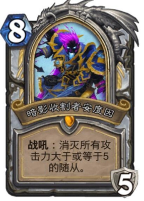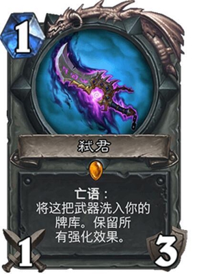 现在的术士还有一个卡组就是恶魔术,但是由于很多恶魔的费用都比较高,为了让它们尽快出场,那么术士的这把橙武也就成了必备的。一旦没有受到克制的话,基本上两回合就能完全把握场面上的优势。