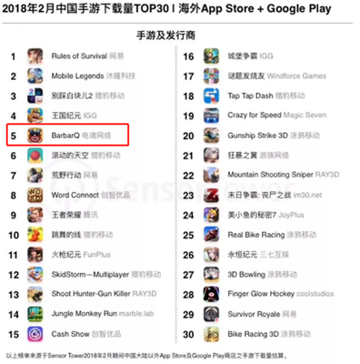 2017年游戏圈的关键词被IO和吃鸡占领。场景化和社交化的IO游戏席卷整个游戏行业,从国外到国内,再从国内走向国外;兴起“吃鸡”游戏从steam走向国内,可说是风靡全球,手游“吃鸡”也是爆款不断。 自去年末游戏行业对关键词进行盘点之后,大家不禁开始展望2018年的游戏行业关键热词。在吃鸡热度有所下降的2018年,IO游戏是否还能够持续旺盛的生命力呢? IO“吃鸡”领跑手游行业,吃鸡下坡趋势明显 从行业看,IO游戏所爆发出来的潜力不可小觑,以杭州电魂网络《野蛮人大作战》为例,在SensorTower2月份公布的全球Google Play最近半年发布的新手游数据中,《野蛮人大作战》领跑2018年1月全球新手游下载榜,经常受到 Google Play 和 App Store 推荐,风头甚至盖过了火爆海外的网易的两款“吃鸡”手游。可要知晓《野蛮人大作战》已经不是一款新游,已足足上线了8个月之久,《野蛮人大作战》接连在App Store上获得全球88个国家和地区的推荐和Google Play上100多个国家和地区的推荐,这些“吃鸡”产品除了《绝地求生》端游,手游可是望尘莫及。