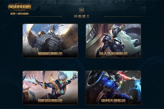 秩序殿堂是《英雄联盟》伸张正义、惩恶扬善的神圣之地。在秩序殿堂里,四大仲裁骑士和五大守护骑士将一同帮助召唤师们伸张正义,惩恶扬善。在这里,召唤师们可以对破坏游戏秩序的行为进行投诉,维护游戏正义,可以为自己的竞技精神和团队协作得到荣誉和奖励,也可以在被恶意举报时申诉,维护游戏公平。 仲裁骑士:四大公正的仲裁系统 四大仲裁骑士分别是:暂离检测系统、送人头检测系统、即时反馈系统和审判天使系统。前两者,顾名思义,分别是对暂离和送人头的玩家进行检测。而即时反馈系统可以检测并记录玩家在对局中的攻击性、侮辱性等语言,接收其他玩家对这些行为的举报,并谨慎地针对召唤师的不当言行给予迅速反馈和惩罚。