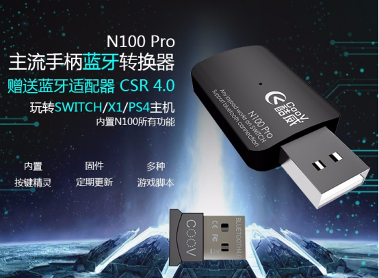 所谓的手柄转换器就是让你闲置的或者熟悉的手柄能玩其他主机游戏。 不知道大家有没有使用过N100,今天的这款测评产品就是N100的升级款N100 PRO。COOV N100 PRO是一款能够支持蓝牙无线连接主机的手柄转换器,有了这款手柄转换器,DS4手柄就可以无线直玩switch主机游戏了。(其他手柄也是OK的)