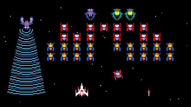98、《Galaga》(1981年发售) 《Galaga》是日本Namco推出的射击游戏,于1981年9月首度推出街机版。玩家需控制画面下方的太空战机,把上方的外星昆虫射掉。这是当年最经典的游戏之一。