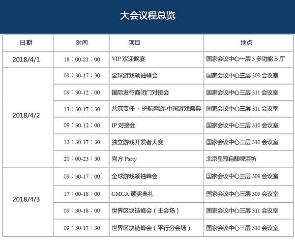 大会议程总览 本届大会邀请了国内外众多企业领袖与行业大咖进行主旨演讲和巅峰对话,在接下来的2天时间里,全球游戏领袖峰会,IPA独立游戏开发者大赛,IP对接会、国际游戏发行商闭门对接会和品牌企业专场等经典板块内容将接踵亮相;更有世界区块链峰会、GMGA颁奖典礼、新华网共筑责任•护航网游——中国游戏盛典等创新版块纷至沓来,版块多元、内容多样的第七届全球游戏大会相信一定会给参会人士与行业嘉宾带来更多价值干货内容和商务合作契机!