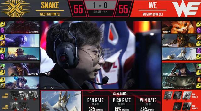 比赛开始后,SS战队占据了比赛的优势,并且取得了10000的经济领先。比赛进行到27分50秒,人头数SS 7-0 WE,防御塔数SS 6-0 WE,小龙数SS 3-0 WE,经济方面SS战队领先WE战队9600元。随后SS战队中路推进,抓住机会直接开团,成功打了波0换3后,SS战队一波带走了WE战队,拿下了本轮系列赛的胜利! |