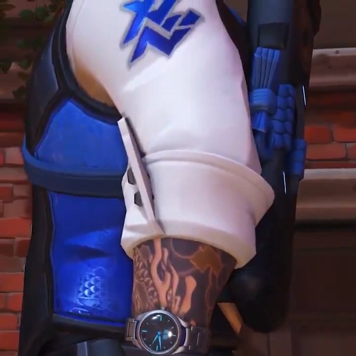 在这款皮肤中,半藏穿上了国王行动主题配色的西装制服,左手袖子上还有一个大大的“忍”字,而且比较瞩目的是左手还戴了一只腕表,难道要和麦克雷一起“午时已到”吗?