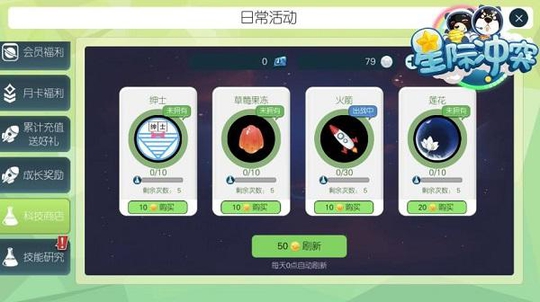 在《星际冲突》中,不同的皮肤不仅有着不同的属性,被动技能也各不相同。所以,皮肤的获取对每位萌新来说也是相当重要的一步。科技商店中的皮肤碎片种类多,获取容易,并且每日凌晨刷新,是获取皮肤的最佳方式。所以拿到的金币奖励可以选择前往科技商店换取皮肤碎片,10片碎片就能够合成皮肤。此外首页的信标功能也能够拿到皮肤碎片,通过打比赛获得信标,发出并等待返航即可收取奖励。