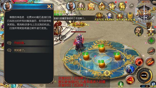 最关键的一点就是,参战英雄对魔物造成的“封魔值”越高,玩家获得的奖励也会相应提高,且“封魔值”是所有玩家争夺封魔贡献榜最终大奖的唯一评判标准。在“封魔贡献榜”中,封魔值最高的玩家还将获得稀有称号、灵魂晶石、30星魂兽副宠包等丰厚奖励!由此可见,封魔英雄的星级高低直接决定了每位玩家“封魔值”的多寡,尽量获得更高星封魔英雄的支援才可以豪取榜单前列的席位! 引领挑战潮流 天关竞速豪取奖励 在“群英封魔纪”活动中崭露头角,在“BOSS天关竞速赛”中同样也能大显身手!“BOSS天关竞速赛”的第一期竞速活动“上古试炼”已经开放,其中共有20位封魔英雄等待挑战,每击败一位封魔英雄可以获得相应的奖励,要注意的是玩家击败第4关、第8关、第12关、第15至20关的封魔英雄后,还可以额外获得封魔碎晶等奖励!而全部通关二十位封魔英雄后,还可以获得稀有道具奖励并解锁扫荡功能,每日只需花费些许魔石并轻点“扫荡”按键,就可以轻松斩获所有奖励,因此尽早通关这场全民试炼,不但能让每日奖励获取速率事半功倍,同时也是展现自己强力一面的最好机会!
