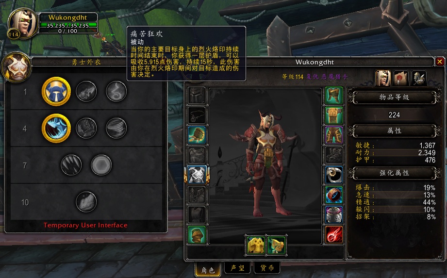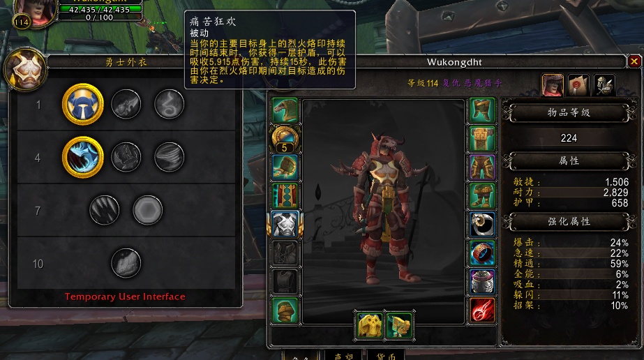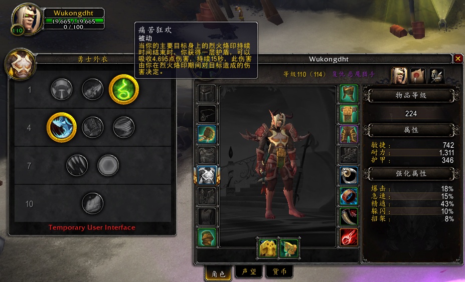 目前测试服只开放了胸甲的艾泽里特特质,关于特质“痛苦狂欢”说明如下。 利用副本光环降低装等这一特性,经测试,结果如下 吸收盾说明数值 6全能185装等胸甲吸收盾说明数值如下 0全能185装等胸甲吸收盾说明数值如下 8全能160装等胸甲吸收盾说明数值如下 0全能160装等胸甲吸收盾说明数值如下 吸收盾实际数值 0伤害185胸甲及160胸甲吸收盾数值如下 猛输出0全能185胸甲吸收盾数值如下 猛输出6全能185胸甲吸收盾数值如下 猛输出0全能160胸甲吸收盾数值如下 猛输出8全能160胸甲吸收盾数值如下 1169火焰伤害0全能185胸甲吸收盾数值如下 1755火焰伤害0全能185胸甲吸收盾数值如下 结论 1.吸收盾说明数值跟对应的胸甲装等有关,其他特质的数值也跟对应的胸甲装等有关,且跟人物面板数值无关; 2.吸收盾实际数值跟你对烙印目标造成的伤害量有关,吸收量略大于对烙印目标造成的伤害量,产生吸收盾的时候实际数值受到当时面板全能数值的加成,最大吸收量不超过说明数值乘以全能值。 |