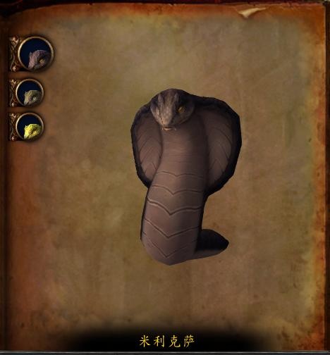 米利克萨之嗣:由塞塔里斯神庙二号Boss米利克萨掉落的完整的眼镜蛇蛋孵化。
