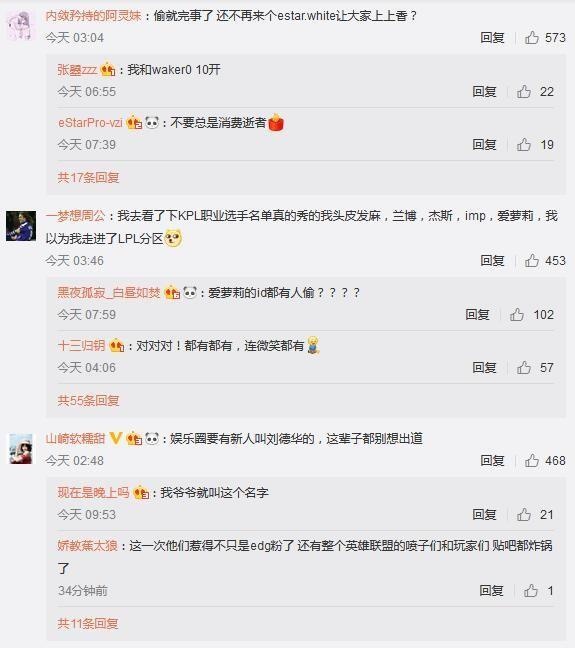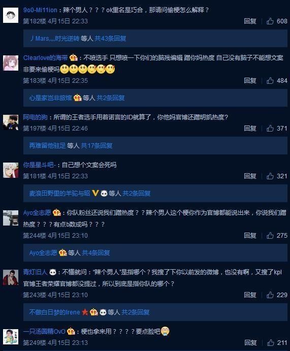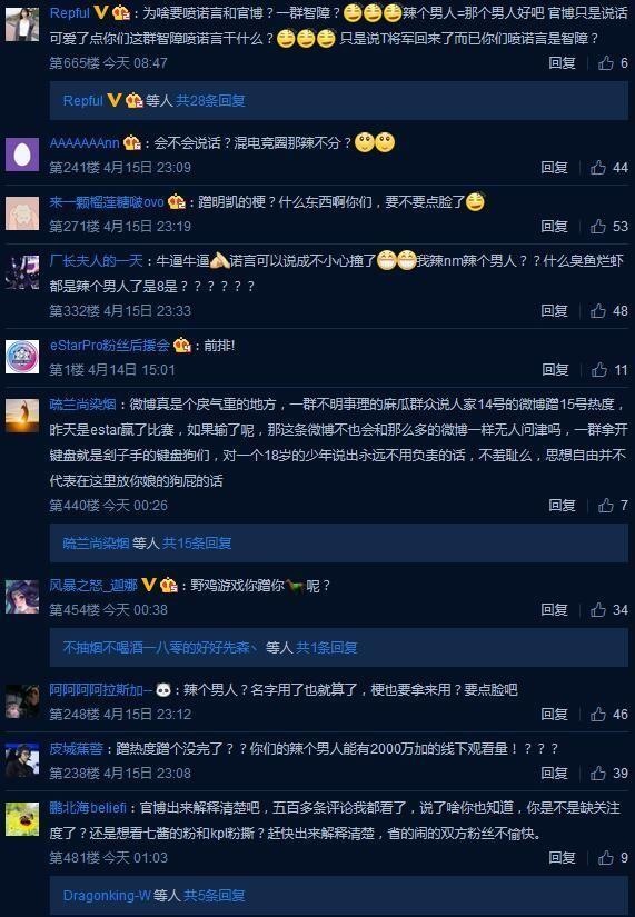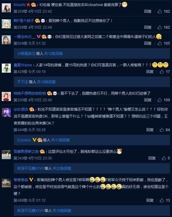相信有关注微博的小伙伴都知道,“诺言颜值”这一热词在昨天曾经登上了微博的热搜榜。 相信看到这一条热搜时,大部分网友第一时间想到的都是LOL老牌职业选手、现役EDG打野厂长。因为在他刚刚踏入职业圈效力WE战队时,他的ID正是“诺言”。 然而当我们点开这条热搜后便会发现,此“诺言”非彼“诺言”,这里说的诺言是《王者荣耀》KPL职业联赛eStar战队的一位选手。 ?不仅如此,在4月14日eStar对阵JC之前,eStar官博在发动态宣传时还提到了“辣个男人”这一词。 得知此事后的厂长粉丝和LOL玩家坐不住了,大量LOL玩家来到eStar官博下方留言吐槽。LOL玩家们认为这条官博不仅提到了“诺言”,甚至还说出了带有明显暗示意味的“辣个男人”,有严重的蹭热度嫌疑。而eStar的粉丝和王者荣耀玩家们则认为只不过是ID重复,而官博在发文又用了另一种语气,甚至还有人表示根本不知道厂长是谁。于是乎,一场骂战就在eStar官博下方拉开了序幕。 而对于这一事件,电竞圈内人士也发表了自己的看法。今天凌晨,知名LPL解说管泽元就此事发表了自己的看法。 而在泽元微博下方,不少网友也表示KPL职业选手的ID实在让人难以相信没有抄袭。因为居然有选手的名字叫“兰博”、“杰斯”等这类知名LOL英雄名字,同时还有选手名叫imp... 甚至还有网友调侃道:KPL世界冠军阵容 Warin、pengi、taker、pang、Molf... 对于LOL玩家,尤其是LPL老粉丝来说,像Uzi、明凯、微笑等等这些ID是我们在青春中无法磨灭的记忆,但王者荣耀和英雄联盟毕竟是两款不同的游戏,因此出现ID重复的情况也不是不能理解,相信这类节奏和选手本身没有太多的关系。但就此事做出营销的eStar俱乐部官博就真的对此事毫不知情?恐怕这样说出来会难以服众。究竟此事最终会如何收场?让我们一起拭目以待吧! |