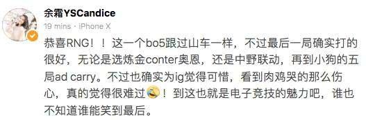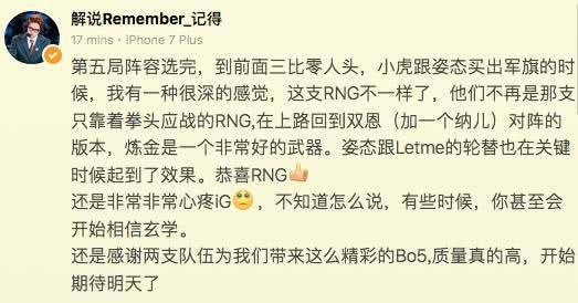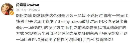 在刚刚结束的LPL春季赛半决赛上,IG和RNG战满五局,最终RNG在决胜局,由姿态拿出了一手炼金玩起了兵线运营,在前中期就确立了自己的优势,即便是在后面遭遇了一些反抗,但是在巨大的经济差面前,IG最终无缘决赛。 而说起这场比赛,其实最关键的点就在中路的那波团战,其实当时jackeylove走掉就好,但是他回头选择和uzi的韦鲁斯互点,要知道在这个时间点,羊刀的韦鲁斯伤害能力绝对不是霞可以抗住的,最终满血的霞被四下点死! 在jackeylove阵亡后,顺带着巨魔也遭到了击杀,RNG拿下了这条大龙,IG最终苦吞败果! 赛后rookie更是在自己的座位上嚎啕痛哭 jackeylove在一旁安慰起来 老队友姿态也赶来给了一波安慰 而赛后关于这场比赛,众多解说也给出了自己的观点 而IG的官方也对粉丝进行了道歉 但不少粉丝还是对IG前几局不ban卡莎以及jackeylove在最后一局的表现耿耿于怀 网友A:jkl拜托你好好训练自己,别膨胀拖累队友ok? 网友B:年年起飞 年年断腿 真的是心累了…… 网友C:去年bang打哭了faker 今年jakelove打哭了肉鸡 网友D:道理我们都懂,为什么不ban卡莎? |