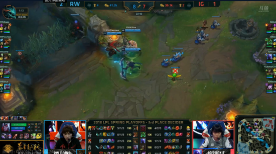 第一局不比赛,IG选择了凤凰中单,上单的慎,打野的猪妹,下路选择了韦鲁斯和奶妈。而RW则选择了塞恩中单,上单瑞兹,莫甘娜和卡莎的下路,打野补了一手皇子。 比赛前期,下路先是在对线被击杀了韦鲁斯,随后又被RW中野绕后给上致命控制,奶妈也死在塔下,卡莎拿到两个人头。随后RW下路直接打穿了IG,再线上连续击杀IG下路,还拿下了一血塔。 中期,RW抱团拿掉了所有外塔,经济领先了8000。拿到巨大优势的RW不断大龙逼团,第一次击杀IG三人,随后拿下大龙,经济领先11000。 后期,RW没有给IG机会,稳扎稳打的拿下了第一局的胜利。 第二局比赛IG搬掉了卡莎,拿到了自己擅长的洛霞,中单拿了一手加里奥,打野选了进场的青钢影。RW则选择了塔姆保护韦鲁斯,上单拿了支援的慎,中单补了一手有伤害的瑞兹。 比赛前期,RW在慎6级的时候配合队友打了一波下路,击杀了IG的下路双人组以后拿下了火龙。本来IG在下路找到机会击杀了RW两人把局面追了回来,不过眼看IG挽回局势,一波上头又在下路把优势送了回去。 中期,IG忽然发力,青钢影和加里奥连续找到机会击杀RW的英雄,RW没法处理青钢影和加里奥的进场。IG顺势拿掉了边路塔,经济领先5000。 后期,IG在野区打残了瑞兹后开大龙,拿下大龙后,主动开团,击杀RW多人后直接破掉两路高地,经济领先13000的IG最终没有给RW机会从下路一波推进拿下了胜利。 第三局IG下路选择小炮加布隆,开局稍稍有点被动,不过并没有落后太多补刀。 六级以后,RW猪妹gank中路,配合上路船长大招,帮Doinb瑞兹拿下一血。等到大招好了之后,猪妹再次来到中路帮瑞兹击杀发条。随后RW转到下路线推掉一血塔。 虽然RW经济一直略有优势,但是第23分钟,IG发条和吸血鬼大招打出大量aoe伤害,IG打出0换2。 第31分钟,IG抓死Doinb,果断开大龙,但是RW抓住时机,猪妹从龙圈背后入场,配合船长大招和连桶打赢团战,IG拿下大龙buff。 第39分钟,Doinb先是选择开远古巨龙,IG以为有机会可以rush大龙,Doinb果断TP,和猪妹合力秒掉吸血鬼。RW拿下大龙buff,破掉IG中路高地。 RW随后来到远古巨龙区,再次打赢被勾引出来的iG,瑞兹开车一波结束了比赛。 第四局IG再次调整思路,上路Duke选到奥恩,下路则是大嘴与莫甘娜。 六级之后,RW再次率先发难,皇子与船长的大招帮助Smlz在下路拿到一血。然后IG中野来到下路击杀RW下路二人组,还以颜色。 中期,RW上中野三个位置都有输出,尽管IG扎克开了很好的团秒掉了韦鲁斯,但是难以解决其他两个C位,RW经济领先近5000。不过IG没有放弃,再次抓死韦鲁斯和皇子后直接拿下大龙,经济追了回来。 不过拿到第一条大龙的IG没有改变比赛的局面,RW在第二条大龙刷新的时间击杀IG的上野后拿下第二条大龙。双方装备都进入一波团战解决比赛的时段,最终RW拿下大龙和远古巨龙后一波团灭IG,拿下了最后的胜利。 |