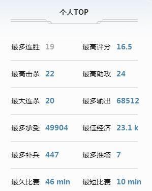 峡谷之巅大区开放后成为了众多职业选手和主播征服的对象,根据WeGame的显示,韩国路人王Dopa已经登顶峡谷之巅。 峡谷之巅排行榜前五名 查阅Dopa的个人荣誉后,可以看到他的胜率达到了60.3%,KDA保持在惊人的12.5,并且拿下超过总局数一半的MVP。 最近的战绩更是非常惊人,而且每一局几乎都是“碾压局”或“Carry局”,Dopa完全制霸了召唤师峡谷的中路。 个人最数据也是非常亮眼,最多的20连杀相当恐怖,还有最长的19连胜。 Dopa的英雄池非常广泛,无论是中路法师还是刺客,亦或者ADC,他都能有极高的熟练度,其中最具代表性的当属卡牌和卡萨丁。韩国路人王实力依旧。 |