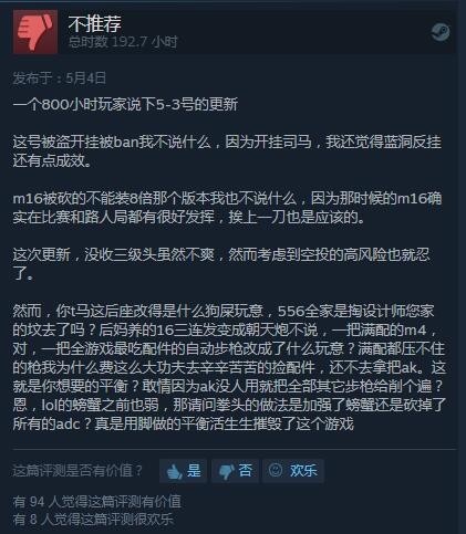 《绝地求生》PC版的第12轮改动正式上线后引来了不少玩家的差评,其中多数是玩家抨击游戏改动的不合理,也有一部分玩家差评是因为游戏目前取消了个人交易功能,还有人是因为游戏修改以后流畅性变差,即使配置很高也有卡顿。而有关反作弊不到位、服务器优化差方面的差评也仍然存在,不过在新增的差评中占比不高。 其中不少玩家提到,游戏本轮改动极大削弱了使用5.56口径弹药的枪械,例如M16的三连发后坐力更大,M4即使满配也仍然不好用等等。 在5月3日,蓝洞宣布暂时关闭游戏的个人交易功能,称该功能遭受到了第三方平台的滥用,因此也迎来了一些玩家的差评。 根据玩家们的普遍反映看来,本轮补丁的实际效果可能并不如蓝洞期待的那样,在枪械的平衡方面没有达到预期中的效果,反而造成了玩家们的集体反感,看来蓝洞在进行未来修改的时候需要更加注意了。 |