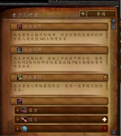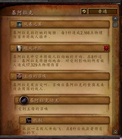 下面是部落方地图赞达拉的三个世界BOSS的前瞻预览。 提赞 综述 随着战斗的进行,提赞会释放其体内囚禁的被折磨的灵魂,造成的效果可以被规避。 伤害输出者 避免在提赞释放恐怖哀嚎时站在他的正面。 当收到嗜魂影响时远离盟友。 避免触碰凝结精华。 治疗者 避免在提赞释放恐怖哀嚎时站在他的正面。 当收到嗜魂影响时远离盟友。 避免触碰凝结精华。 坦克 避免在提赞释放恐怖哀嚎时站在他的正面。 避免触碰凝结精华。 技能 碾压重击 猛击目标,命中后造成物理伤害并将玩家击退。 另外,会清楚目标的威胁值。 凝结精华 创造一个灵魂漩涡宝珠,触碰后宝珠会爆炸,对目标造成12275点暗影伤害并将其击退。 嗜魂 使随机玩家体内能量溢出,每2秒对周围8码内的盟友造成4332点暗影伤害,持续6秒。 恐怖哀嚎 对施法者前方锥形范围内的所有敌人造成21661点暗影伤害,并使他们在3秒内因恐惧而逃走。 模型 战利品 基阿拉克 综述 基阿拉克用她巨大的羽翼掀起狂风攻击敌人,将他们卷入其中,再将其击退。 伤害输出者 飓风冲压会对其中心区域的所有目标造成致命伤害。 抓取可以被群体控制效果打断。 治疗者 飓风冲压会对其中心区域的所有目标造成致命伤害。 飞翼打击会被所有队伍成员造成大量伤害。 坦克 保护盟友不受主母的召唤召唤出的基阿拉克幼龙影响。 飓风冲压会对其中心区域的所有目标造成致命伤害。 技能 风暴之翼 基阿拉克怕打她的翅膀,每1秒造成2166点物理伤害并将敌人推开。 飓风冲压(灭团技) 基阿拉克升空并将敌人拉向她的方向,在8秒过后,基阿拉克撞向地面,对受到影响的所有敌人造成17329点物理伤害。 主母的召唤 基阿拉克发出尖叫,召唤出基阿拉克的食腐龙来攻击周围的敌人。 基阿拉克幼龙 受到主母的召唤 抓取 抓住一名敌人并起飞,在6秒后施法者将目标扔下。 模型 战利品 食沙三叶虫 综述 食沙三叶虫会迅速多次交替施放咆哮和大地之刺,躲开这些攻击,坚持猛攻即可胜利。 技能 音波轰鸣 施法者发出猛烈的咆哮,对前方锥形范围内的所以敌人造成15140点物理伤害。 大地之刺 施法者践踏地面,使地上升起若干根石柱,每根石柱对2码内的所有玩家造成14718点物理伤害并将其击退, 原始暴怒 施法者进入原始暴怒状态,发动一连串毁灭性的攻击。 暂缺 模型 战利品 |