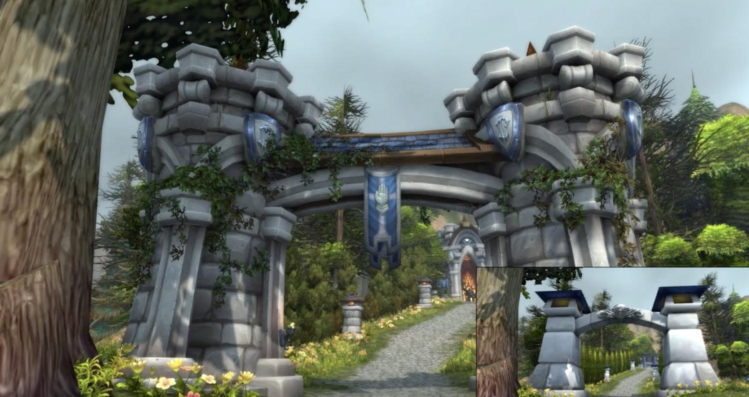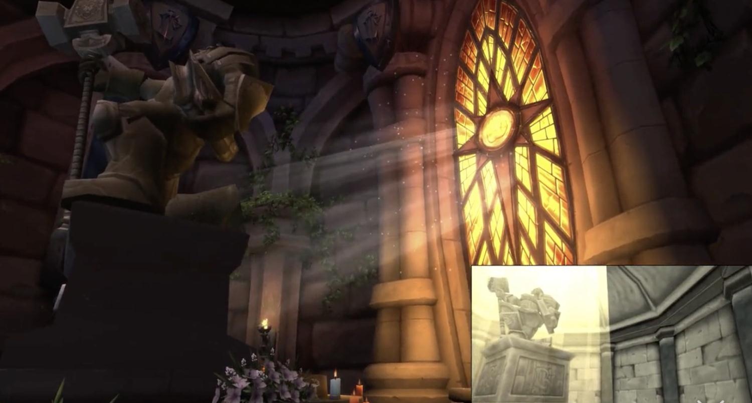 “一条小青铜龙告诉了我你们血精灵打算对我的墓碑做什么,我一点都不意外 。” 魔兽世界8.0最近爆出了乌瑟尔之墓装修后的视觉预览,让我们一睹为快吧! 可以看到,更新后的乌瑟尔之墓门口挂上了白银之手的旗帜和洛丹伦的徽记,蜿蜒的藤蔓也悄悄爬上了墙头。 主体建筑更加精致了,新添加的彩绘玻璃带来的光源取代了原来的圣光普照。墓道两侧也挂上了白银之手的旗帜。整体建筑的画风更符合7.0之后圣骑士相关建筑的整体设计。 关于本次地形更新的猜测,Wowhead前瞻区给出了如下可能: 一种说法认为在8.0的洛丹伦与阿拉希之战之后,联盟将会继续向北推进,西瘟疫之地将会在剧情当中起到重要的作用。另一种说法则认为乌瑟尔本人会在可能出现的伯瓦尔家庭故事线中起到重要作用,因此对他的墓穴做了重新设计。当然,也有可能是因为暴雪美工良心发现,或是为了对著名的圣骑士黑弗洛尔表达无声反抗,而做出了这一改动。 不过无论原因如何,如今提瑞斯法已经被留下了几乎不可能愈合的战争创痕,不过如果老乌瑟尔在时空枢纽泉下有知洛丹伦得到了光复,他会不会感到欣慰呢? |