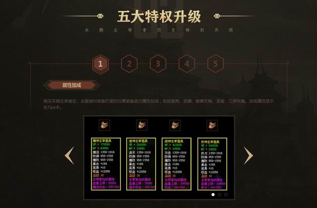 开启至尊特权,尽享无上荣光!盛大游戏旗下经典PK网游《传奇世界》2018全新主宰者特权即将于明日正式开售!作为2018年首发的特权,全新的主宰者不仅完美继承了荣耀战宠、专属封号、装备升星、路径特效等特权,更增添了主宰者专属羽翼、每日药水等全新特权,价钱更优惠的同时,属性加成也更给力!纵横沙场,享受收割的快感,开启即可享受! 特权属性加成 五大特权升级 成为主宰者后,不仅可以领取无相天魔战袍、上古灵兽、主宰者专属技能等,更有强大的专属属性加成。为了方便玩家,本次主宰者的属性采用了直接对玩家装备栏进行加成的方式,与所穿着的装备无关。也就是说无论你如何更替装备,都能享受主宰者属性加成所带来的收益。 尊贵随时延续 特权随时开启 从本期的主宰者开始,游戏内售卖主宰者的NPC将永久开放,玩家可以随时前往皇宫购买,并且购买价格比往期更为优惠!在6月25日之前购买,更有千元折扣!此外,主宰者的特权、属性等每半年会进行一次升级。 赠送专属羽翼 药水免费领取 与之前相比,本期主宰者将赠送一套炫酷羽翼,强大的属性加成,霸气绝伦的外观,凸显装备者的高贵身份!不仅如此,为了让各位主宰者们PK更加畅爽,本期还增加了主宰者免费领取海量药水的特权,药水不足再也不能阻挡你纵横战场的脚步了! 天为乾,地为坤,我为主宰!《传奇世界》全新主宰者特权,你值得拥有! 了解更多相关信息,请前往http://game.yzz.cn/html/info-858.html |
