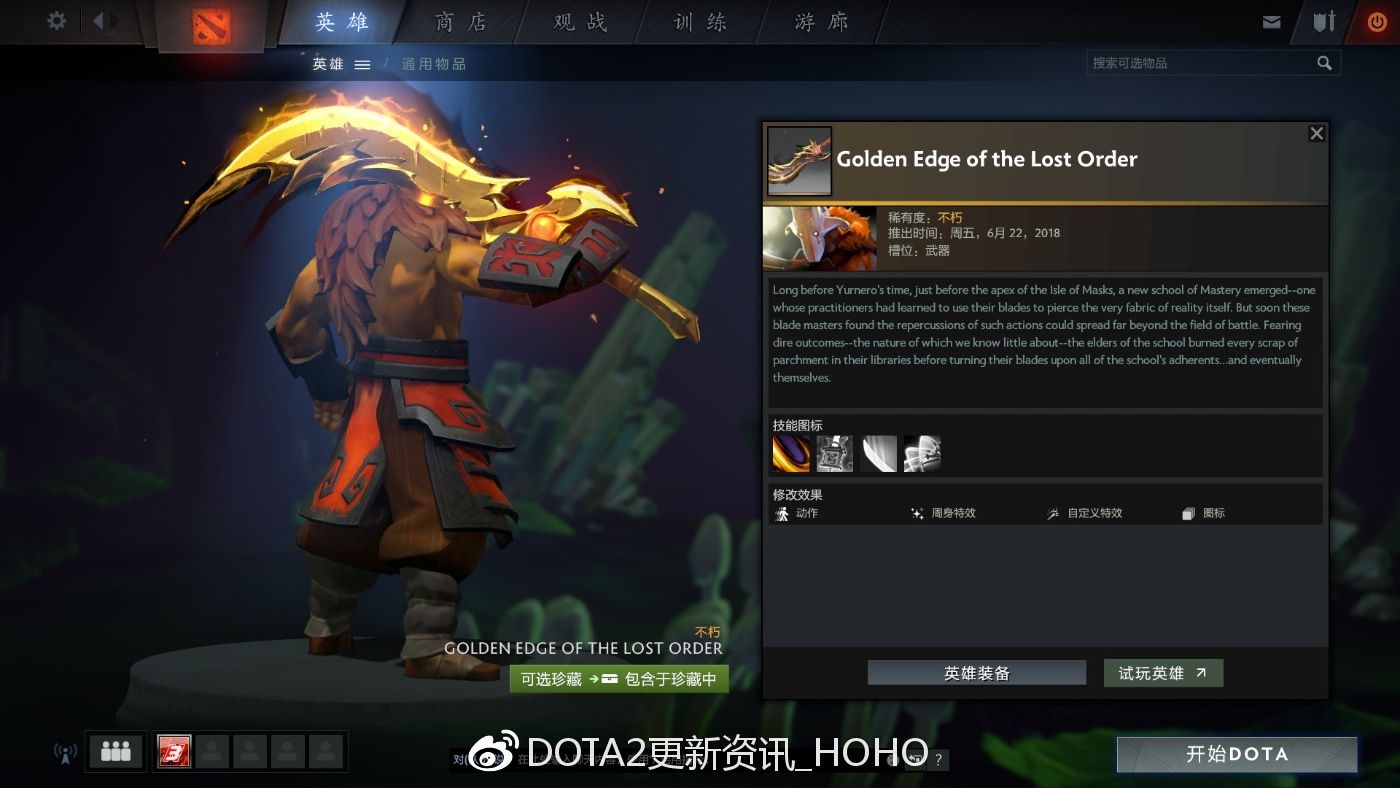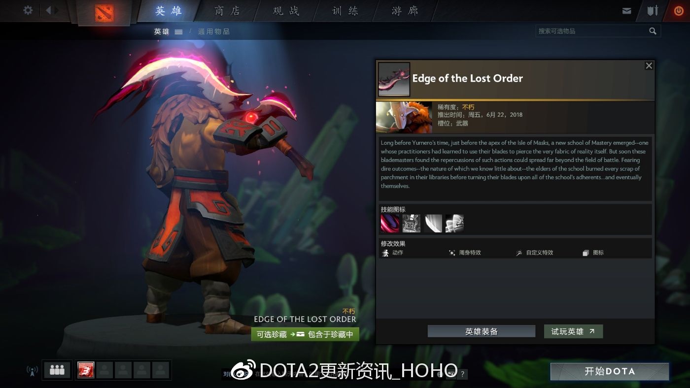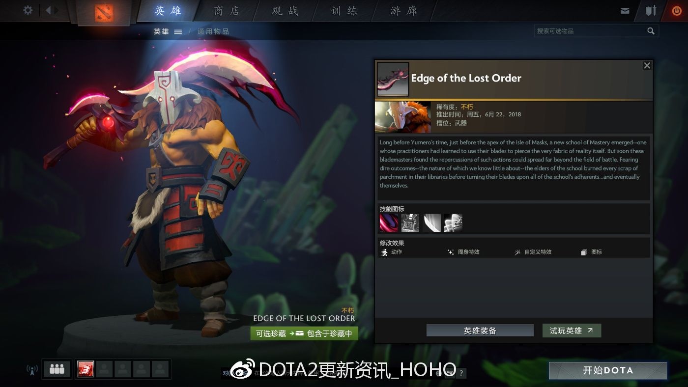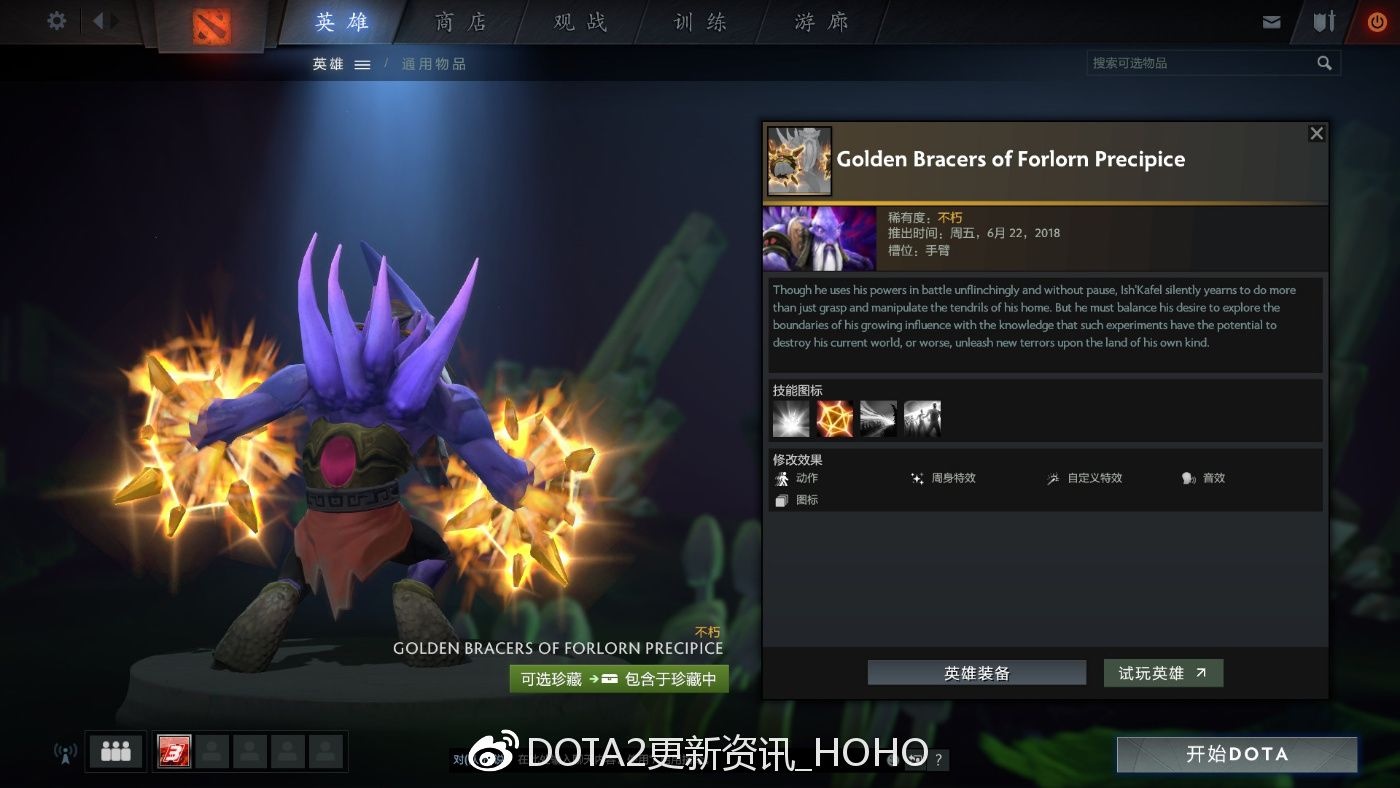 就在上周,《DOTA2》有一个264.6MB的更新,主要是关于一年一度的“TI8不朽宝藏II”的相关内容。 不朽2一共有11个物品,其中有1个冥魂大帝稀有,2个黒贤和剑圣的纯金非常稀有和1个黑鸟极其稀有,TI8晶阶纹章为珍稀绝伦。 黒贤手部不朽,改变2技能效果特效: 效果预览: 毒龙尾巴不朽,修改2技能效果: 效果预览: 剑圣不朽武器,修改1技能效果: 效果预览: 双头龙不朽头饰,修改1技能效果: 效果预览: 全能不朽头饰,修改2技能效果: 预览效果: 末日不朽手部饰品,修改1技能效果: 预览效果: 冥魂大帝的不朽武器为额外稀有,修改3技能效果: 效果预览: 黒贤纯金不朽为额外非常稀有,修改2技能效果: 效果预览: 剑圣纯金不朽同样为额外非常稀有,修改1技能效果: 效果预览: 黑鸟不朽武器为额外极其稀有,修改大招效果: 效果预览: 跟不朽1一样,TI8晶阶纹章为额外珍稀绝伦: 其他更新: 之前更新的各国翻译文本加入后台 |