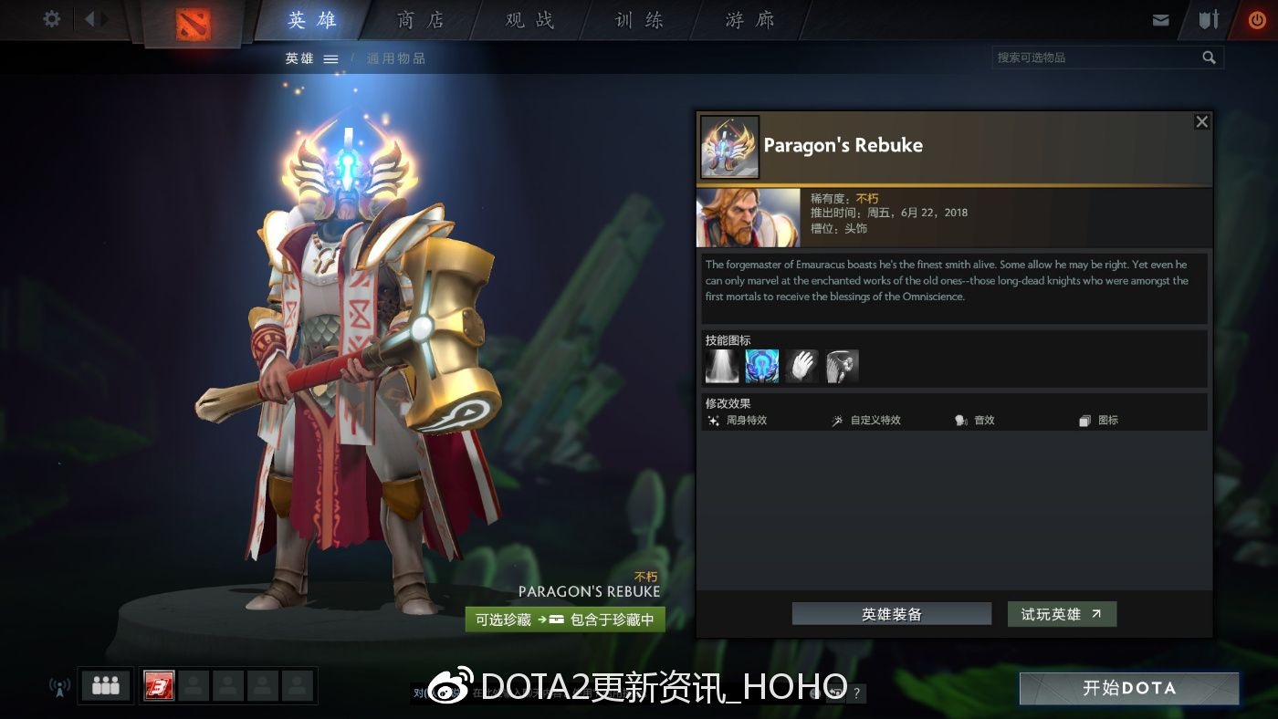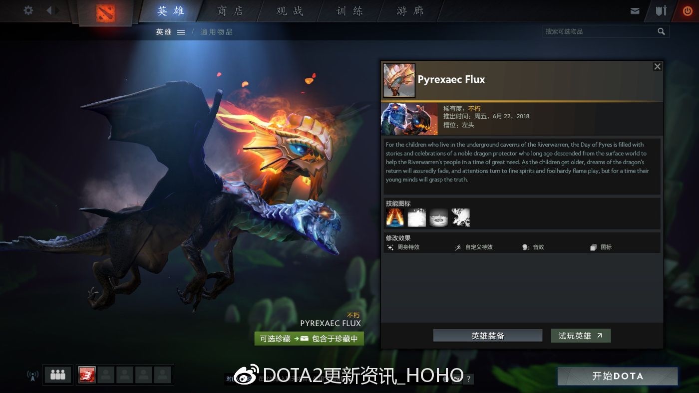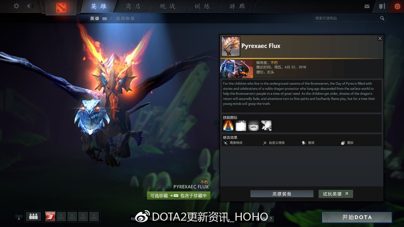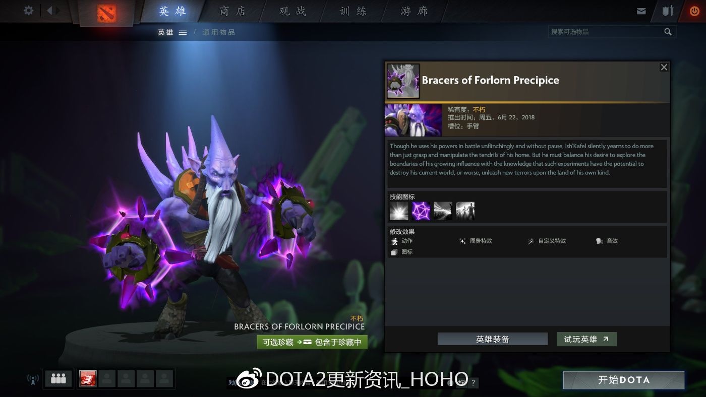 就在上周,《DOTA2》有一个264.6MB的更新,主要是关于一年一度的“TI8不朽宝藏II”的相关内容。 不朽2一共有11个物品,其中有1个冥魂大帝稀有,2个黒贤和剑圣的纯金非常稀有和1个黑鸟极其稀有,TI8晶阶纹章为珍稀绝伦。 黒贤手部不朽,改变2技能效果特效: 效果预览: 毒龙尾巴不朽,修改2技能效果: 效果预览: 剑圣不朽武器,修改1技能效果: 效果预览: 双头龙不朽头饰,修改1技能效果: 效果预览: 全能不朽头饰,修改2技能效果: 预览效果: 末日不朽手部饰品,修改1技能效果: 预览效果: 冥魂大帝的不朽武器为额外稀有,修改3技能效果: 效果预览: 黒贤纯金不朽为额外非常稀有,修改2技能效果: 效果预览: 剑圣纯金不朽同样为额外非常稀有,修改1技能效果: 效果预览: 黑鸟不朽武器为额外极其稀有,修改大招效果: 效果预览: 跟不朽1一样,TI8晶阶纹章为额外珍稀绝伦: 其他更新: 之前更新的各国翻译文本加入后台 |
