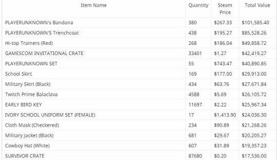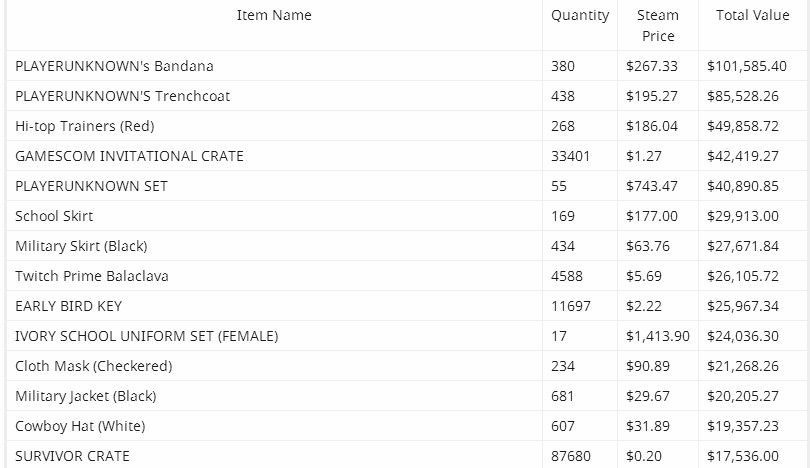 前段日子,Valve封禁了第三方饰品交易网站“OPSkins”的所有交易机器人,这也意味着所有在该平台上寄售的所有Steam平台游戏饰品被永久冻结。 近日,有Reddit论坛的网友利用自己编写的程序,并借用Steam平台的Web API对OPSkins的物品损失进行了统计。根据他计算得出的结果来看,仅仅是《绝地求生》这一款游戏就有964243件物品被封。虽然自从蓝洞关闭个人交易后《绝地求生》的饰品价格便一直处于下跌状态,但根据目前的市场价值来看,这一批饰品的总市场价值约为1018486.58美元(约合人民币674万)! 以下是部分被封禁饰品列表,价格已经非常惊人了: 自从5月3日PUBG Corp在没有任何预警的情况下突然关闭了《绝地求生》的个人交易,因此导致在OPSkin机器人库存中的964243件饰品被冻结。而就在近一个月后的6月9日,Valve方面宣布将在6月21日封禁所有OPSkin的交易机器人。 6月9日当天,OPSkin方面发布了声明,劝说用户在V社宣布的最后期限之前撤回他们的所有寄售物品,不过绝大部分持观望态度等待的玩家并未照做。当时间来到6月21日后,蓝洞方面依然没有开启个人交易,但V社的冻结则如期而至,因此导致大量的游戏内物品被永久冻结。 |