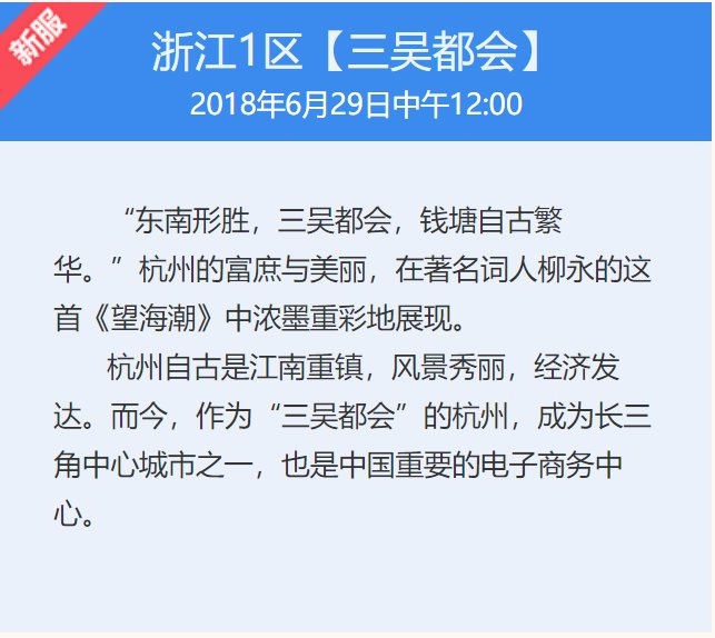 “东南形胜,三吴都会,钱塘自古繁华”。江南的富饶,孕育出了独特的江南文化,而这也吸引了无数文人骚客以诗词歌赋去展现自己对这片土地的深情眷恋。6月29日,《梦幻西游》电脑版诚挚邀请诸位少侠前往浙江1区新服三吴都会,纵览江南美地,品味杭州从古至今的浪漫风情,在这个全新的世界中,邂逅新的故事。 专题链接:http://xyq.163.com/2018/xinfu/#month6 纵情高歌,三吴都会火热开服 三吴,旧称吴兴、吴郡、会稽,而杭州就位列于三吴腹地,独占七分风流。自秦朝设县治以来,杭州已经有2200年历史。自隋唐起,它因风景秀丽,又得京杭大运河的东风,得以成为江南重要的商业、文化中心。白居易、苏轼、杨万里、柳永等诸多文人骚客都曾以自己的视角,书写对这个城市的深情厚谊。而在其中,柳永更是以“三吴都会”四字,用白描之法写尽它的繁华。 6月29日,《梦幻西游》电脑版全新服务器三吴都会正式亮相浙江1区,期待少侠入驻其中领略杭州独特的江南风情。在这个繁华之地,少侠不仅能效仿历代文豪纵情高歌,也能感受这一城市在互联网时代所呈现出的独特活力。在寻觅江南情怀的过程中,相信少侠也能找到属于自己的那份缘。 零秒延迟,专属绿色通道助你先人一步 一个优质的服务器环境,将有利于少侠在冲级过程中先人一步,走得更远。为此,《梦幻西游》电脑版为诸位少侠特别准备了免费新服绿色通道,为少侠提供优先排队和登录的专属特权。 少侠只要在开服前3天或者开服7天内,登录原服务器或者新服,在活动NPC处预存指定数量的点卡,就能尊享绿色通道资格并领取额外的新服贵宾礼包一份。在少侠等级达到50级之后,就能领取包括彩果、传音纸鸢、秘制回梦饮等珍贵道具,并获取大量的经验和储备金,闯荡新服,轻松自如! 年卡/月卡免单,海量福利助你畅游三界 除了专属绿色通道福利外,《梦幻西游》电脑版还为关注并支持三吴都会的少侠,带来了多重福利,其中包括: 年/月卡免单:在服务器开放30天内,少侠只要为帐号转换年卡或月卡,然后使用年卡或月卡帐号下对应的角色点击梦幻精灵,输入“年卡免单大派送”,报名参与活动,就有机会抽取年卡/月卡好礼。需要注意的是:只有转换了年卡的少侠,才有机会获得年卡免单活动。 新手特权礼包:少侠使用新注册的帐号进入《梦幻西游》电脑版之后,就可以在礼包中心——官方活动——新手挑战特权礼包中,输入序列号MMTWX5WVVANVM5K8,领取新手特权礼包一份! 口袋版/互通版分享:少侠在登陆《梦幻西游》口袋版或互通版,完成口袋版任务,达到指定活跃度或获得成就之后,即可将其分享到易信好友/朋友圈、微信好友/朋友圈、微博,每天第一次分享后,少侠可以获得额外经验奖励,加快升级速度。 除了以上专属活动之外,少侠更可以前往专题链接,轻松了解冲新服实用攻略以及口袋版/互通版攻略,为自己量身定制专属新服成长计划! 杭州作为中国传统的商业、文化中心,在互联网时代,依旧散发着独特的魅力,吸引着五湖四海的逐梦者。而现在,三界子民也可以入驻三吴都会,卧听钱塘潮,细品西湖水,在虚拟世界中,读懂杭州之美。 |
