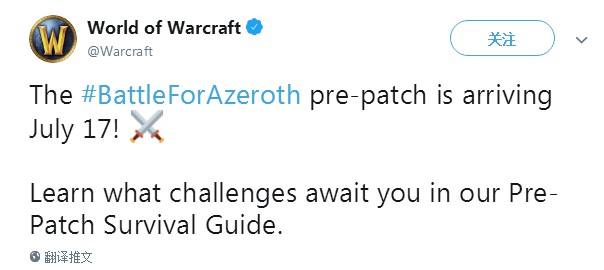 《魔兽世界》官方宣布,8.0“争霸艾泽拉斯”版本前夕将于7月17日开启!
