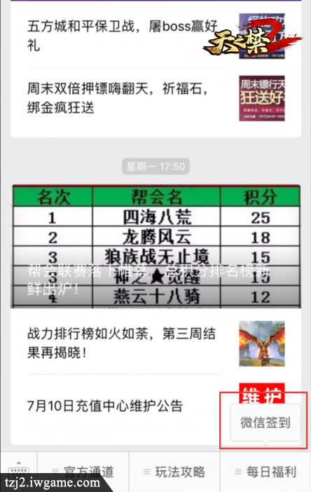 全民夺宝!人人赚钱!《天之禁2》内测新版本“无尽的宝藏”与新区【逐鹿】已经于6月15日13点火爆开启!激爽的PK、血性的战斗一直是《天之禁2》最大的游戏特色,为了增加游戏内玩家活跃度,建立更好的游戏体验,《天之禁2》团队终于强势推出了玩家们期待已久的跨服新玩法,全新玩法带来全新体验,让我们一起先睹为快! 游戏官网:http://tzj2.iwgame.com 推荐区服:内测新区【逐鹿】 《天之禁2》微信签到天天送好礼,月月奖励大不同 炎炎夏日,热情似火。随着“全民夺宝,人人赚钱”的新版本的上线,玩家对《天之禁2》的热情亦是有增无减,《天之禁2》的公众号也承载着玩家们的热情,很多玩家在公众号下留言,其中不乏好的意见跟建议,给我们版本的更新方向提供了很大的帮助!为了回馈《天之禁2》玩家对我们长久以来的支持与鼓励,我们在此推出微信签到活动! 只要您登陆微信,绑定自己的账号,点击签到按钮,便能领到今天的奖励,每个账号仅限一次!一个月内我们有15次签到领奖的机会,每天只能领取一次,而且签到次数越多,奖励越丰厚!每个月的奖励也会变动哦!只要您轻轻一点,一份好礼就能到您手中,还能一手掌握最新的《天之禁2》资讯! 现在让小编来教大家如何签到领奖吧: 1.关注微信公众号 扫描这个二维码关注我们《天之禁2》的微信公众号 2.公众号右下角有个【每日福利】按钮,点击开来 3.随后会出现【微信签到】按钮,点击开来,跳转至微信签到的界面 4.随后你就可以登录自己的账号,绑定自己的区服跟角色啦! 5.点击中间的【签到领取今日奖励】按钮,便可领取到今日份的奖励。 6.之后还可以点击右下角的【查看奖励】按钮,查看这个月十五天的不同奖励哦。 7.也可以点击【查看领取记录】按钮,查看自己的领取记录。 【活动规则】 1.活动期间,每日每个账号只限领取今日奖励一次,每个月将更新不同的奖励。 2.今日奖励将通过游戏内邮件形式发放至对应的角色邮箱中,请注意查收。 3.每日奖励更新周期以实际更新为准。 4.每日每个微信号只能领取一次,若此微信号今日已经领取,则切换其他账号今日不可再次领取。 全民夺宝!人人赚钱!6月15日13:00《天之禁2》内测新大区【逐鹿】即将火爆开启,新地图!新战斗!新玩法!大型新版本“无尽的宝藏”等你来战!即刻扫描二维码并关注《天之禁2》官方公众号,抢先了解更多相关信息! 关于《天之禁2》: 《天之禁2》是由绿岸网络倾力打造仙侠网游,旨为所有仙侠网游爱好者奉上一场酣畅淋漓的仙侠游戏盛宴。《天之禁2》本着“爽战”游戏理念,并围绕着赚钱、颜值、体验、版本及玩法五大维度进行颠覆式革新升级,全天候热血战斗点燃你的激情;游戏有数十名游戏女神组建“美女主播天团”,深闺佳丽日夜陪你玩游戏,24小时畅聊不停息;游戏拥有装备100%打造体系及玩家自由交易模式,并开放一系列全新福利活动,每日畅玩轻松赚钱,非RMB玩家优选! ※《天之禁2》 2018仙侠网游巨作 ※《天之禁2》 游戏官网:http://tzj2.iwgame.com/ ※《天之禁2》 官方论坛:http://bbs.tzj2.iwgame.com/forum.php ※《天之禁2》 官方微信公众号:tianzhijinol 了解更多相关信息,请前往http://game.yzz.cn/html/info-5814.html |