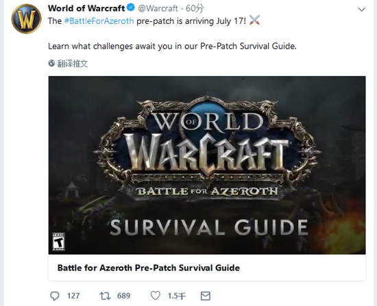 今早官推公布,美服与7月17日争霸艾泽拉斯前夕版本上线。