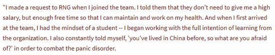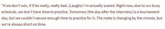 近日,韩国电竞媒体INVEN发布了一则对英雄联盟俱乐部RNG教练Heart的采访。 标题:《RNG教练Heart:Uzi感觉像是和野兽一起生活在丛林里的人,他的行为不像是人类的表现》 以下是选取的部分采访内容: “我的情况嘛,曾经不太好。我之前患上了严重的急性焦虑症。最严重的时候我甚至不能上台BP,还发作过几次癫痫。如果有人患过类似的病症应该懂那个感受,我甚至连门都不敢出,害怕随时会横尸街头。” “当时的人生并不是我想要的。即使付出了许多努力也没有得到认可。不,我不需要认可,但我的努力至少应该激励到其他人也努力一些对吗?在我人生总是伴随这么一个想法‘如果其他人不努力,我就需要更努力来弥补。’但内心深处我并不想要这样的人生。” “出生时就患上心脏病,Heart解释到害怕心脏病突发让急性焦虑症加重了,他经常在晚上因为这个睡不着。 为了克服这个,Heart付出了很多,他说他没有选择。他的症状不仅影响自己,还影响了身边的人,他不希望这样。所以他带着新生的姿态,一步一步去挑战自己,比如离开家,在餐厅吃饭,坐飞机等。” “我刚来RNG的时候就申请了,工资不用高,但一定要给我充分的自由时间来改善自己的健康状况。我刚来的时候我是抱着学习的心态来的,我不断告诉自己‘你之前就生活过在中国,现在怕什么呢?’来克服急性焦虑症。” “我以前是辅助选手,所以我他们补刀时的动作就知道ADC的水准,Uzi有野兽般的直觉,这令人着迷。如果说Deft和Pray是那种学校毕业的模范生,Uzi就是在丛林里和野兽生活过的人,他的所作所为根本不是人类能做到的。” 提问:“目前国内许多粉丝对RNG的期待都很高,LPL对RNG今天赢得世界冠军抱着很高的期待。” “如果我们没赢,那就很糟糕了(笑)。其实我很害怕,现在我们的行程非常忙,我们没时间训练,明天又是一个比赛日,但我们没有时间为了这个比赛训练,版本又一直在变,我们的时间总是不够。” |