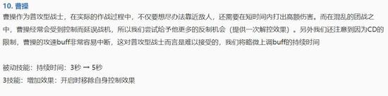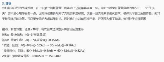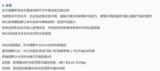 《王者荣耀》新版本已经上线2天了,相信各位小伙伴在游戏中也体验了不同的感觉。而在本次更新中,芈月、钟馗、孙策、韩信、狂铁、梦奇、庄周、太乙真人、不知火舞、钟无艳和曹操这11位英雄都得到了加强,同时版本热门的项羽和元歌则遭到了削弱。而在加强的英雄中,不知火舞、曹操、芈月、韩信和狂铁则是改动较大的,下面我们就来一起看看。 不知火舞:或回到大众视野 你有多久没见到不知火舞这个英雄了?我自己差不多有大半年没见过这个英雄了。想当年,不知火舞是唯一可以跟诸葛亮同时上场的中路法师,但最近3个赛季,她的表现很一般。 火舞最大的问题是AOE伤害不够,虽然1技能和3技能都是AOE伤害,但同时也是近身伤害,不能指望用这2个技能去清兵线。AOE伤害不足所带来的最大的问题就是清兵慢,而清兵慢最直接的反应是支援慢,一旦被困在兵线上,火舞的机动性就无法展现出来。 本次调整增加了2技能连续风筝的难度,但也提高了不知火舞追击和撤离战场的能力,被动机制的改变,也意味着一场团战中火舞可以多次打出被动出来。 以前一直就觉得火舞的被动很难受,因为不知火舞是一个需要用2技能持续消耗和粘着对方,这就意味着火舞很难处于脱战状态,就像虞姬以前的被动一样,作为一个输出点,团战的时候肯定的是持续输出的,这次被动改成CD状态,对火舞来说是一次不错的增强,而能打出多次被动,也增强了火舞线上的清兵能力。 个人玩火舞的感觉,连招更顺畅,身法更加灵活,清兵速度也加快了一点,但目前中路法师百花齐放,火舞能否稳定上场还得看刺客打野的强度比如韩信,能否打破现在的平衡,同时其他中路法师的表现也会挤压火舞的出场空间。 芈月:清兵能力加强,前期节奏加快 被动增加对小兵的额外伤害,意味着芈月的线上的清兵能力加强,同时大招的被动被加到2技能上,也就意味着前期芈月的节奏就非常快。 芈月虽然是法师英雄,但现在基本上都是用来打边路的,很少或者说几乎没有把芈月放到中路的打法了,不能打中路很关键的一点就是清兵太慢和打团能力太弱,对面法师一波兵都解决掉,开始游走了,你还在默默打小兵。 这次被动的加强,让芈月有条件回到中路位置,今天也遇到不少中路芈月,清兵速度明显加快了,但团战能力还是硬伤。 对于芈月,更好的选择还是边路,以带线为主,毕竟她的单带能力没几个英雄能够比。 曹操:边路又多了一个可选择的英雄 你说现在的曹操弱吗?一点也不弱,关键原因在于他需要一个比较稳定的输出环境,曹操不算是打爆发的战士,所以他需要比其他战士更长的输出时间。 这次曹操加强最大的意义在于 减少了对于队友的依赖 增强了输出能力和输出时间 大招可以很轻松的打满了 其实被动3秒的曹操,到了中后期也能做到被动持续叠加,无限叠加,而新版本无疑让被动更加容易更加轻松的达到无限叠加的状态,同时大招的免控制效果,也与被动相辅相成,让曹操有了万军丛中稳定的秒后排能力。 我觉得新版曹操最大的意义在于,喜欢玩曹操的玩家有信心可以拿出这个英雄了,曹操不管是单线对线射手还在战士,还是非常舒服的。 韩信:炮台法师们要小心了 今天也遇到不少韩信队友和对手,总体感觉,韩信更敢打了,强度有个很明显的提升,是肉眼可以看得到的,但我个人感觉,韩信的加强最大影响是在中路位置上。 其实各种类型英雄之间是有克制效果的,像刺客型法师就不怕战士类英雄和刺客型打野,而炮台型法师就很惧怕刺客型英雄,这点相信王者荣耀的老中路玩家应该体会更深。 韩信加强后,有可能会让现在低迷的刺客型法师小小的崛起一波,让炮台型法师难受一下,喜欢诸葛、貂蝉等刺客型法师的玩家可能会间接的收到一波福利。 狂铁:技能依赖减小,2技能控制比之前稳定 你说狂铁边路弱吗?他有几乎所有打边路的条件:赖线能力,爆发能力,唯一不足的是稳定的控制能力,如果狂铁的控制能力在稳定一点,绝对稳坐边路T0-T1级别的英雄。 今天用的几个英雄中,狂铁给我的感觉最好,线上几乎是压着一切的存在,玩了几局几乎没回过家,同时能量也比较容易保持在30>的状态(1技能+2次普攻),也很容易叠满,塔下单杀典韦,画面真的很美。 这次调整算是间接的加强了他的控制能力,因为减少了对技能的依赖,对能量的损耗,可以通过普通攻击来进行消耗和回复,而他的普通攻击又与能量值直接挂钩,普通攻击越多,能量增长越多,相应的,2技能所需要的控制能量值也就更稳定。 但狂铁的问题还在,逆风的时候不太容易积攒能量,腿短的问题依旧很明显。 关于新英雄司马懿 从今天一整天的测试来看,不管是敌方司马懿还是我方司马懿,强度没有向上一个新英雄元歌登场时那么难以针对,可能也与是新英雄大家都不熟悉有关。 司马懿很容易就能摸到后排,但也很容易就让自己出不来,我觉得大家对于他大招的使用还得在练练。 另外体验服和正式服司马懿的机制有些差别,新英雄还得观察几天。 出装方面,法术普攻无法打出暴击,物理伤害没有了加成,体验服中的双修出装也就没有了意义,出装以纯法为主,攻速鞋+血书+巫术法杖+帽子+虚无+辉月,另外也有不少玩家带时之预言,铭文可以带点攻速。 总结: 当然,每次新版本更新,都需要一段时间来观察,从而才能更准确的判断这个英雄的强度,就如达摩一样,连续被调整了2次,现在莫