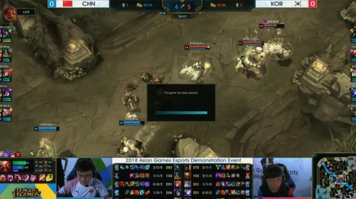 2018雅加达亚运会电竞表演赛《英雄联盟》项目的比赛与今日正式开始,在今天的比赛赛程中中国队有四场比赛,但仅有主舞台的两场比赛会被直播出来。在这两场直播的比赛中,对阵的对手分别是哈萨克斯坦代表队以及韩国代表队。目前两场比赛均已结束,下面让我们一起回顾一下这两场比赛的具体内容! 开幕的首场比赛迎来的便是中国代表队与哈萨克斯坦代表队的比赛,首场双方阵容如下: CHN-BAN:洛、慎、莫甘娜、巨魔、奥拉夫;CHN-Pick:杰斯、卡蜜尔、瑞兹、卡莎、牛头; KAZ-BAN:阿卡丽、塔姆、EZ、寒冰、刀妹;KAZ-Pick:奎因、艾克、剑魔、狐狸、布隆。 这场比赛双方都选择打野红BUFF开局,不过Mlxg招牌的2级Gank成功在下路拿到一血。虽然自己被布隆换掉,但中国队由于一血和人数助攻优势依然小赚一波。 上路Letme的杰斯遭到打野Gank,但在死前反杀掉了对方的奎因,并且在随后的对线中多次单杀奎因。同时中国队在线上多点开花,频繁打出击杀并趁着优势掌握了所有地图资源。 比赛来到16分钟时,中国队已经领先15000经济,并且拥有巨额的防御塔和人头压制。随着装备差距拉开,17分钟的一波团战直接破掉高地拿下胜利,仅用时17分钟便打出了30:3的比分,以碾压态势赢下开门红。Mlxg不仅拿下了中国队的首次击杀,同时也拿下了首个MVP。 在下午的第二场比赛中,中国代表队正面迎战劲敌韩国代表队,本场双方阵容如下: CHN-BAN:维鲁斯、瑞兹、巨魔、解释、千珏;CHN-Pick:阿卡丽、奥拉夫、佐伊、卡莎、洛; KOR-BAN:卡蜜尔、剑魔、牛头、奥恩、科加斯;KOR-Pick:船长、酒桶、加里奥、寒冰、塔姆。 这场比赛在4分40秒时上路遭到Gank,Letem被酒桶拿下一血。 随后虽然Mlxg帮助Gank上路,但Kiin在塔下成功完成1换1。 下路一波团战中,中国队趁韩国队越塔阵容脱节反打完成1换2,比赛暂时陷入僵局。 而在最后蓝色方高地的一波团战中,尺帝寒冰拿下4杀一波终结了比赛。 值得一提的是,在本场比赛中曾经出现了三局暂停,目前暂不清楚暂停的原因以及喊出暂停的一方,但这或多或少会对选手们产生一定影响。 不管怎么说,希望选手们能够在接下来的比赛中调整好状态,争取打出好成绩为国争光,让我们一起期待他们的表现吧! |