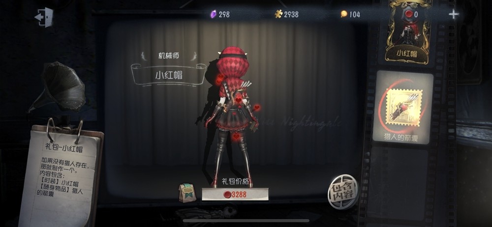 网易首款非对称竞技手游《第五人格》,年度新资料片“第五游乐场”已经上线,在推出全新2V8联合狩猎玩法的同时,还为求生者角色机械师打造了稀世时装“小红帽”。 小红帽是《格林童话》中的经典角色,这次《第五人格》机械师稀世时装“小红帽”,会让玩家感受浓厚的哥特暗黑画风。 游戏中穿上稀世时装“小红帽”的机械师变成了极具哥特气质的暗黑萝莉。 机械师“小红帽礼包”已经在游戏商城上架,其中不仅包括此套稀世时装,还有稀世随身物品“猎人的箭囊”。玩家装扮后,会像弓箭手般把箭囊背在身后,上面还有鲜红的玫瑰作为装饰,并且也会闪烁黑红的爱心特效。另外,装扮了这款随身物品的玩家,操控的机械人形玩偶也会发生变化,它将披上黑色兜帽、穿上黑色长靴,和小红帽在一起神秘感十足。 |