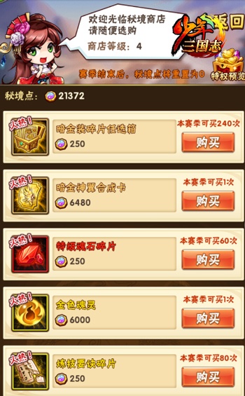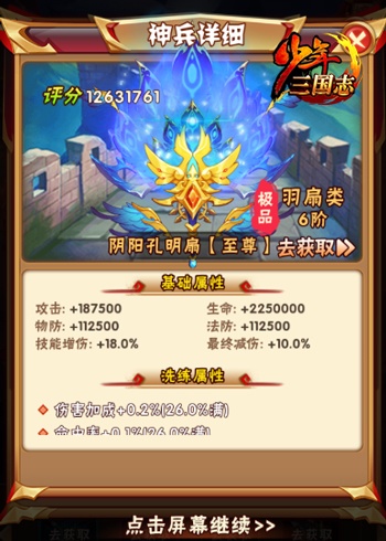 《少年三国志》全新版本“乾坤幻境”将于明日正式上线,“无限”PVE闯关玩法“无上秘境”来袭,届时玩家可前往挑战,获取暗金资源碎片、神翼合成卡、特级魂石等珍稀资源。此外,还有12把暗金神兵即将登场,助力少年征战三国乱世! 全新版本“乾坤幻境”明日上线 斗万象秘境 破百万雄关 玩家可挑战不同难度的秘境关卡 全新玩法“无上秘境””是拥有“无限” 关卡的PVE闯关玩法,该玩法由金、水、木、火、土、无上六个不同难度的秘境组成,玩家可根据自身战力情况选择并前往挑战,获取金色魂灵、炼技要诀碎片等丰富奖励。 每层关卡中有五位怪物 每层秘境中的怪物按照金、水、木、火、土五行排列,怪物的装备、战马、战宠等配装全部随机组合,并佩有“灭蜀”“暴虐”等随机属性效果,玩家可任选泽三个怪物进行挑战。此外,玩家在通关过程中还可在有限次数内召唤好友上阵助力。 秘境点可兑换丰富资源 与此前简单重复的固定关卡模式不同,全新PVE玩法“无上秘境”破除了关卡数量限制,玩家可在自身战力增长的同时不断去挑战秘境的“极限”。同时,秘境中的怪物装备、品质、属性等全然不同,共计有百万种组合变化。玩家在闯关过程中,要基于自身战力、怪物属性情况、每日幸运组合等多重因素进行选择挑战,从而感受到全新的闯关体验。 暗金神兵降世 助力乱世三国 暗金神兵“阴阳孔明扇”预览 除了全新玩法上线外,12把暗金神兵:寒星拱月刀、龙凤双股剑、神龙偃月刀、鬼神方天戟、丈八辟邪矛、龙纹古锭刀、阴阳孔明扇、龙魂亮银枪、青金双龙戟、轩辕破天弓、两仪开天斧、金麟良才笔也在新版本中正式登场。 暗金神兵“神龙偃月刀”预览 与此前神兵升级进阶不同,暗金神兵拥有全新的属性与技能孔位,玩家可根据佩戴武将的特性为神兵定制个性化的技能与属性搭配,从而帮助玩家在对决中更加强势,此外暗金神兵拥有特色养成方式,丰富了游戏内的养成体验。 《少年三国志》全新版本9月27日正式上线,更多精彩内容,请登录游戏后亲自体验。 关于《少年三国志》: 《少年三国志》官方微信:sg_youzu 《少年三国志》官方微博:@少年三国志 《少年三国志》官方网站:sg.youzu.com |