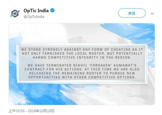 在昨天下午举办的《CS:GO》极限之地线下赛中,来着印度战队Opitc India的选手Forsaken因使用微自瞄辅助作弊工具被抓现行,赛事官方也发布公告,取消了Optic India本次比赛的的所有成绩。 官方证实在Forsaken的电脑上发现事情不对后,比赛暂停了20多分钟,他们花了很长时间才确定Forsaken是否作弊,因为他拒绝裁判查看他的电脑,然后关闭并删除了一个在后台运行的程序。 视频加载中,请稍候... 自动播放 《CS:GO》选手试图删除作弊程序: Optic India的高管Jesal Parekh表示:“我们要向所有其他的队伍和组织道歉,这对所有参与者都是不公平的,我们也想向我们的国家和支持我们的粉丝道歉,这对于国家而言将是一个很大的挫折,而且不幸的是,这一切仅仅是一个人的自私行为导致。我想非常清楚地告诉大家,其他四位队员对此并不知情,如果有一丝了解,他们也不会同意比赛。” 尽管如此,今天Optic India在推特宣布,除了解除与Forsaken的合同之外,依然要开除这支战队的全部成员。 |