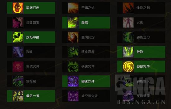 首先不可否认的是势如破竹天赋是上限最高的天赋,但是由于这个本站位以及分散的限制,大部分BOSS 选择了1313211或者1333211的魔化天赋,如果有细微调整,会在独立的BOSS里单独提出来说。 1号:塔罗克 作为一个入门BOSS还是挺简单的 天赋为1313211 常规单体天赋 小爆发期保证眼棱魔化里可以打出两个死亡横扫就行 TIP:BOSS在释放[鲜血大锤]时,血满时可以冲锋上去,利用滑翔躲避击飞继续输出,血量不足想继续打时请开[疾影] [血色静电]点名完成之后(锁定人之后)绕到BOSS侧方或者后方输出 实在绕不开 请不要进入红圈内打,以免吃到多段[血色静电]的伤害导致死亡 P2大怪出线之后是可以跟着大怪打的。大怪留下的血池伤害是治疗可以承受的范围内。 转回P1之后场上大怪没处理完,可以走位到大怪和BOSS中间释放 刃舞/死亡横扫打双目标 时间轴起手交变身,不是DPS特别快的团,可以开出第二个变身,第二瓶药可以跟着变身走。DPS太快的团。4分30秒内击杀的,变身跟着嗜血走。 2号:纯净圣母、 由于过门需要迅速清理掉刷新小怪,天赋第三层换出邪能弹幕 现在主流打法是两波大减伤全团一起过,过完门之后预留眼棱以及弹幕,小怪出现之后眼棱-死亡横扫-邪能弹幕-XXX-死亡横扫 当然 注意仇恨过高OT以及注意BOSS接下来的射线COMBO。。。 TIP:这波AOE期间,射线感觉自己躲不开可以用虚空行走规避 我们团采用的是一门正常过 二门全团一起过的打法 我是第一波过门的三个DPS之一 起手偷个药 T和治疗过去之后跟着ZS以及DK一起过门 我们需要留技能处理的怪是[腐蚀残迹] 过门之后[腐蚀残迹]刷出来眼棱-死亡横扫-邪能弹幕-XXX--死亡横扫 期间注意打断/混乱新星小怪的读条 变身留给三门的BOSS易伤 3号:泽克沃兹,恩佐斯的传令官 由于会有固定时间轴刷新的小怪 天赋第三层换出邪能弹幕 小怪刷新时间为1/3/5分钟 那么请卡CD使用你的30S技能 眼棱 ,以及一分钟技能 邪能弹幕 起手交过之后可以完美契合小怪的时间轴, 在BOSS各种移动调头时。注意规避好BOSS的正面顺劈。翻腾欺诈如果有必要可以使用虚空行走放到黑暗翻腾(跳舞机)的黑水里。 如果团队战斗时间在9分钟左右,可以开出第三个变身,那么变身卡CD使用,战斗时间小于8分钟,第二个变身留给你吃球之后强化了开。 TIP:根据BOSS血量吃最后30秒的球是最完美的时间轴吃完变身打完BOSS差不多倒地。 4号:维克提斯 BOSS为单体附带单目标ADD的战斗 推荐天赋为1313211 自己会觉得这是个木桩形BOSS,我们输出时需要注意的是尽量让刃舞以及死亡横扫提供的毁灭之痕,打到BOSS和育种刷出的小怪。剩下的就是踩好圈以及终极菌体DEBUFF的传递了。 尽量让眼棱/刃舞/死亡横扫打在双目标期间。 TIP:BOSSP2液化时放出来的线,虚空行走可以规避伤害但是无法规避叠层。 5号:腐臭吞噬者 当时开荒时传说中的求你大软刷中间。。。 天赋为1313211 ![]() 这个BOSS我们需要考虑的是如何减少DPS的损失 打的时候我会做一个BOSS的焦点,然后把焦点施法条拖到一个显眼的位置 即使在我转火小软/大软时,我也可以清楚的知道BOSS施法的击飞, 从而利用滑翔来减少DPS的损失以及不会和其他人一起被击飞到墙角叠层。 BOSS击飞时面朝BOSS方向释放滑翔即可 背对会造成你还是往反反向击飞。 第一波软泥可以利用BOSS击带来的位移去接近小怪 之后的第二轮第三轮请提前跑过去 这个BOSS的转火,提前跑过去第一时间打到比什么都要重要。 不管是打大软还是小软转火时注意先给法系爸爸们提供法术易伤 说你呢法术易伤 (混打或者眼棱) 这个BOSS不管是开荒还是FARM都是一个你瘤了就需要队友擦屁股的BOSS。 需要打得高很简单,BOSS百分之50易伤之后对着BOSS撸就行了。 我们的目的是过BOSS,所以请服从团长的安排去转火,以及你的药水爆发如有需要都留给软泥。 TIP:1。规避击飞我自己用的方法是读条最后0.5秒内按空格即可 试过提前跳起来滑翔 有可能会传到T导致灭团 2。第一波小怪可以利用BOSS击飞跑位 具体方法为背对你需要转火的小怪 让BOSS把你朝那个方向击飞 3。提前跑过去第一时间打到比什么都要重要! 4。转火时优先打上法术易伤 6号:祖尔 EMMMM切风筝T了 感谢团队在某一天奇迹般的大软刷中间迅速过掉狗之后陪我灭了一天祖尔 灭到自闭改了个名字 由于本人复仇打得很少。。。下面如有说的不对的请指出 天赋如下 ![]() 起手倒数两秒释放 [烈焰符咒] 大跳过去4只小怪拉在如图所示的位置 ![]() 1破裂1幽魂炸弹 位置是让DZ可以刀扇到其他人人的AOE技能打不到的位置即可 起手四只小怪至关重要,务必让其他AOE停手 自身的炸弹伤害以及DZ的伤害就足够让小怪死得很快了 小怪死亡后大概5~6秒复生 提前铺好烈焰符咒,以及大跳之后留下的符咒建立仇恨 起手四只怪硬抗,第二波怪刷新到场上的时候找DZ要嫁祸,接稳仇恨之后围绕着冰法的暴风雪圈开始风筝。 风筝的目的是让DZ的刀扇赞星 而不是让你拉着小怪满场跑。 风筝路线围绕着BOSS即可,拉太远没冰法减速,DZ也打不到。 第三波怪刷新之前尽量让手上风筝的怪死亡进入复生期 场上剩余的怪过多找DZ要嫁祸之后开大招接住仇恨再开始风筝 风筝过程中,有恶魔尖刺减伤覆盖的时候,可以抗几只怪打破裂和幽魂炸弹稳固仇恨。 担心猝死的话对着BOSS本体(祖尔)打破裂和幽魂炸弹稳固仇恨也行。 不要把地狱火撞击当做位移技能来使用,