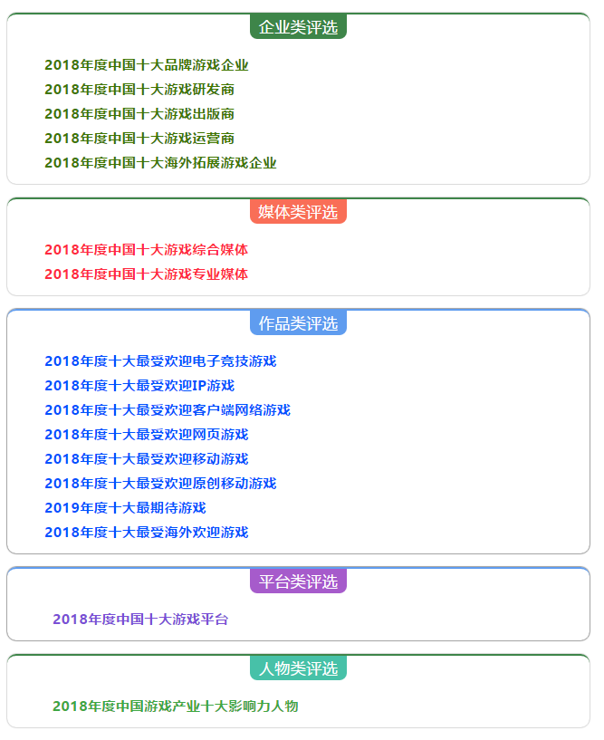 由中国音像与数字出版协会主办,中国音数协游戏工委承办,具有第九艺术封神榜称号的中国“游戏十强”目前正在网络投票阶段,用户可登陆中国音数协游戏工委官网游戏产业网进入投票页面进行投票。欢迎行业同仁、游戏玩家积极参与。 作为中国游戏产业最具代表性、影响力、公信力的行业殊荣,中国“游戏十强”各项评选将表彰本年度中国游戏产业中涌现,做出卓越贡献的企业家、对行业发展起到重要作用的企业单位、以及颇受用户欢迎的游戏精品。从目前投票的情况看,用户投票参与度极高,主办方为防止恶意刷票,为投票系统设置24小时同一IP只能投一票,投票前需完成调查问卷,某一评选瞬时大量增加选票将被核查等措施,保证本次活动公平、公正进行。 企业类评选 媒体类评选 电竞产品评选 注:以上名单仅为单日实时投票显示,仅供参考 此外,从目前统计结果来看,游戏产品中,《英雄联盟》、《王者荣耀》、《球球大作战》、《部落冲突:皇室战争》等流量收割机悉数上榜。而《第五人格》、《崩坏3》等新作排名也不容小觑。"游戏十强"评选正成为中国游戏产业新老品牌交汇之地, 并如实反应目前国内市场的最新变化。 2018年度中国“游戏十强”评选,包含十大品牌游戏企业、十大游戏出版商、十大最受欢迎客户端网络游戏、十大最受欢迎移动游戏、十大游戏综合媒体等共五大项十七个分项评选,每项评选均有十个获胜名额。最终评选结果将在年末举办的2018年度中国游戏产业年会上对外公布。 投票地址:http://2018gametop.cgigc.com.cn/ 专题地址:http://www.cgigc.com.cn/ |