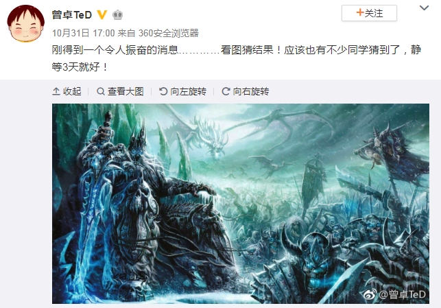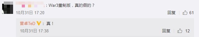 今日,WCG2012年魔兽争霸3世界冠军曾卓在微博上爆料,《魔兽争霸3》将重制!从他发布的图片来看应该是《魔兽争霸3:冰封王座》,而且曾卓表示会在今年暴雪嘉年华上正式公布。 War重制?曾卓:真的! 此外在评论区中曾卓还表示,这次《魔兽争霸3》重制版的画面会提升不少,据说能有D2(应该是指《Dota2》,不是《暗黑2》)的画面质感。 War3重制版会提升不少画面 巫妖王要怒了再怒了? |