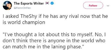 iG.Theshy赛后言论:世界上没人能跟我对线